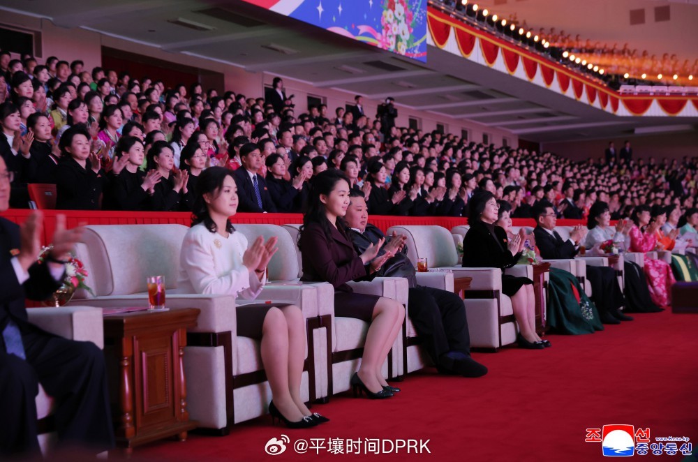 金正恩同志偕同李雪主女士和心爱的女儿步入观众席。此时,盼着这一光荣时刻到来的全体参加者心潮澎湃,爆发出了雷鸣般的“万岁”欢呼声。