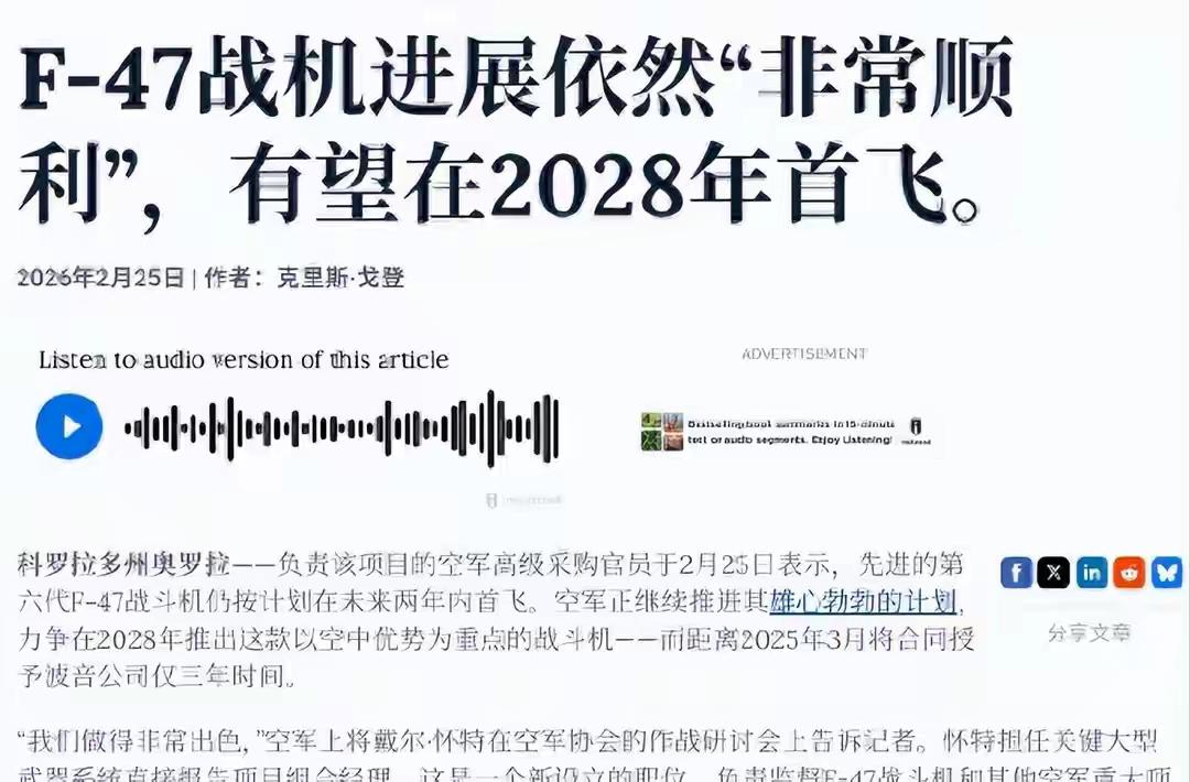 美国硬造F-47什么时间有,说是已试飞五年,波音此前只造F-15,突然跨越五代,直接到达六代,特大统领给出的答案,一切皆有可能。在他眼里,有钱没啥事办不成。洛马借助两款五代机,富的都冒了泡,波音,曾助力川普当选的波音,今日得到投桃报李,是很自然的事。项目还没头没影,就强说性能高杀伤力强有史以来最先进,真是滑天下之大稽。与其说美国骄傲,不如说狂傲,狂的鼻孔朝天,都没边了,哪里还会把世上众生放在眼里,尤其像东大这种乍富国家,心里上完全不能接受。心想自己最强大,砸了钱完全可搞定。成与不成,是与不是天知道,他顺嘴一说,世人听听就好。