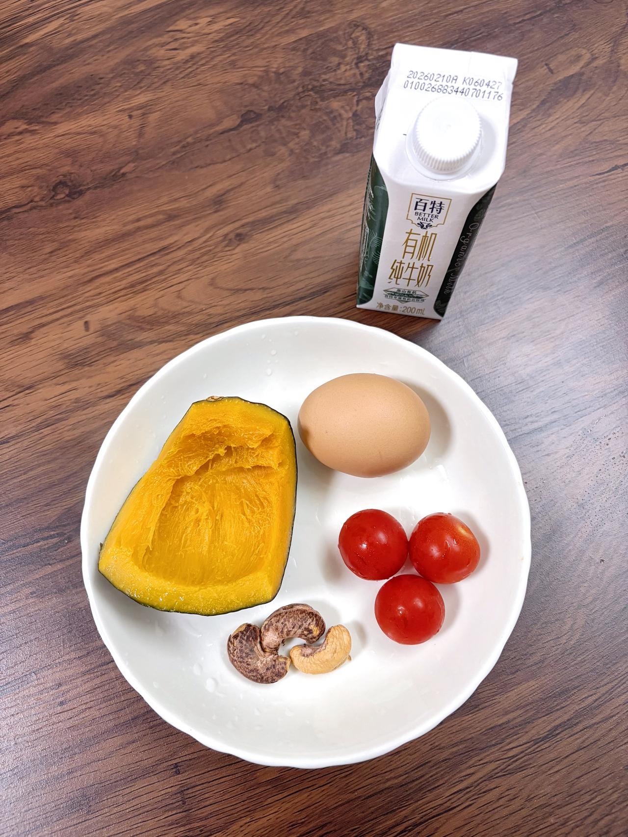自律减脂健康餐,目标95斤,加油 今日体重:105.7斤⬇️0.7斤 今日减脂早餐:南瓜+鸡蛋+番茄+腰果+纯牛奶
