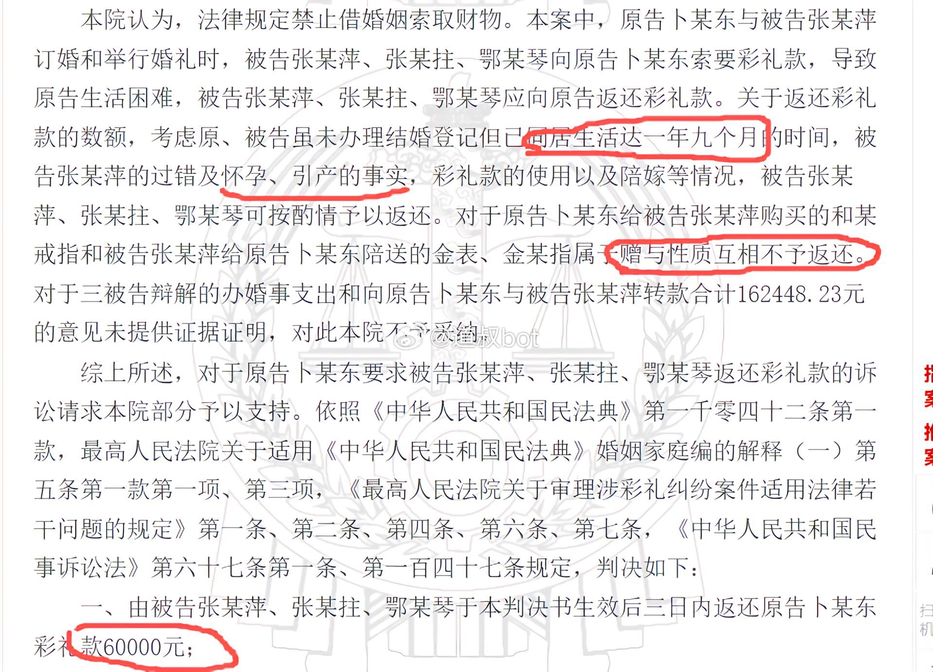 同居1年9个月,彩礼25万,备孕查出梅毒引产法院扣除陪嫁后判决返还6万彩礼!