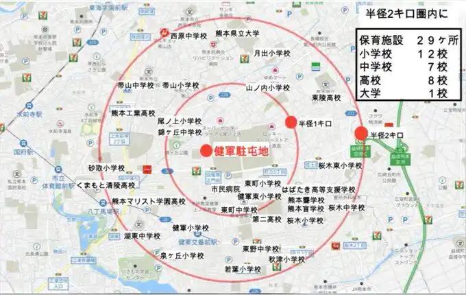 日本于熊本市部署远程导弹 熊本导弹配置地点2公里内有:29个幼儿园,12个小学,7个中学,8个高中,1个大学。