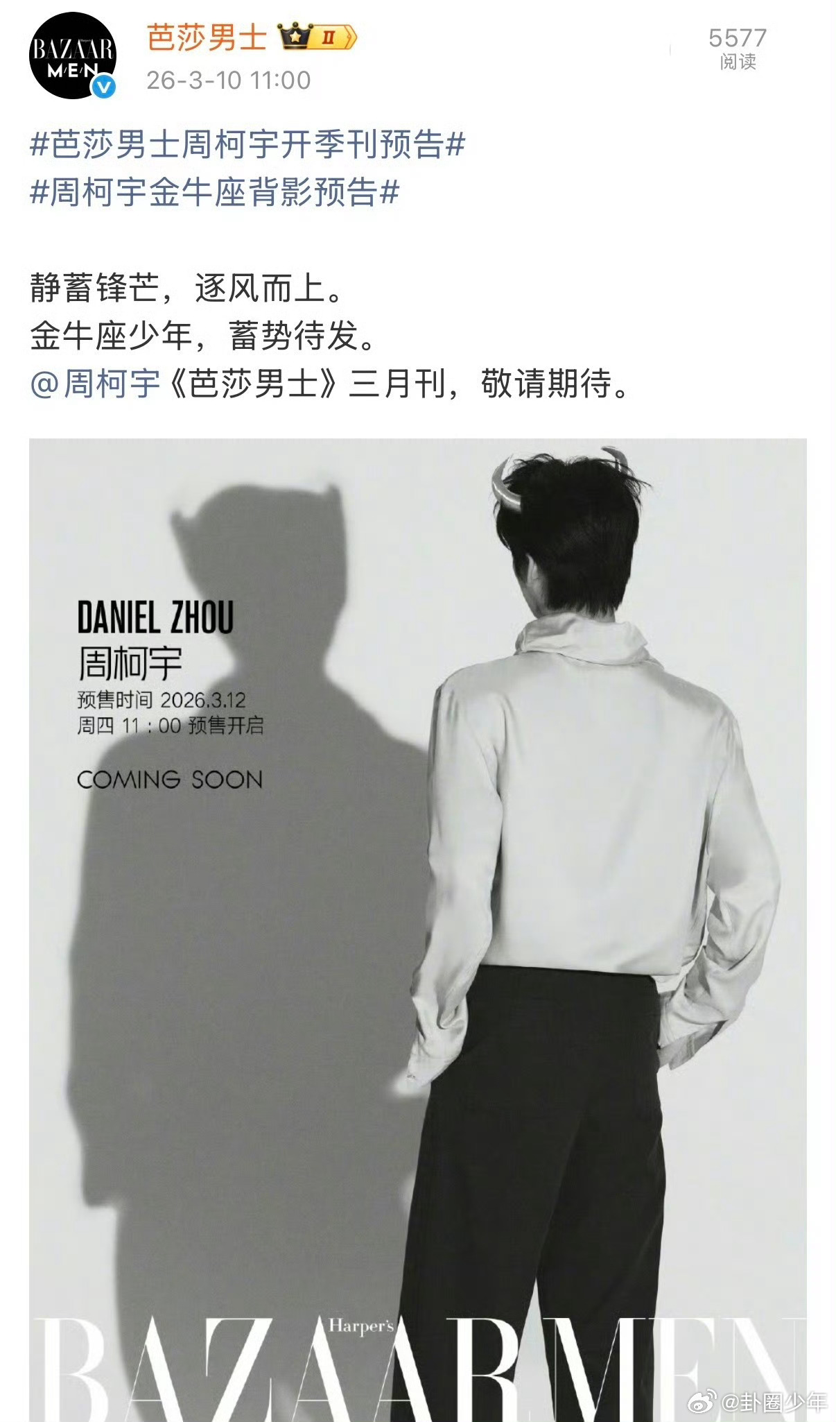 周柯宇逐风而上周柯宇静蓄锋芒逐风而上时尚表现力拉满!周柯宇荣登芭莎男士开季刊,创