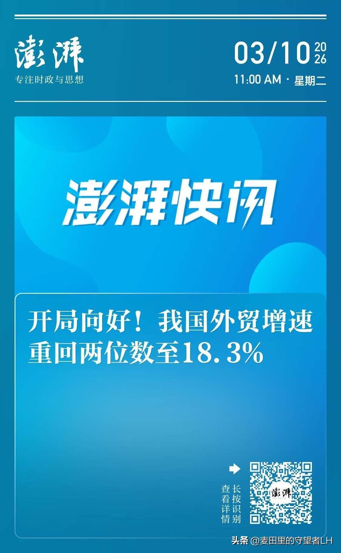 可喜可贺,新年开局大利好! 我国外贸增速,重回两位数增长,达到惊人的18.3%。 充分彰显出,大国实力,大国担当,及对全世界的影响力。 证明现在这个世界,少了谁都行, 唯独不能缺了我们。