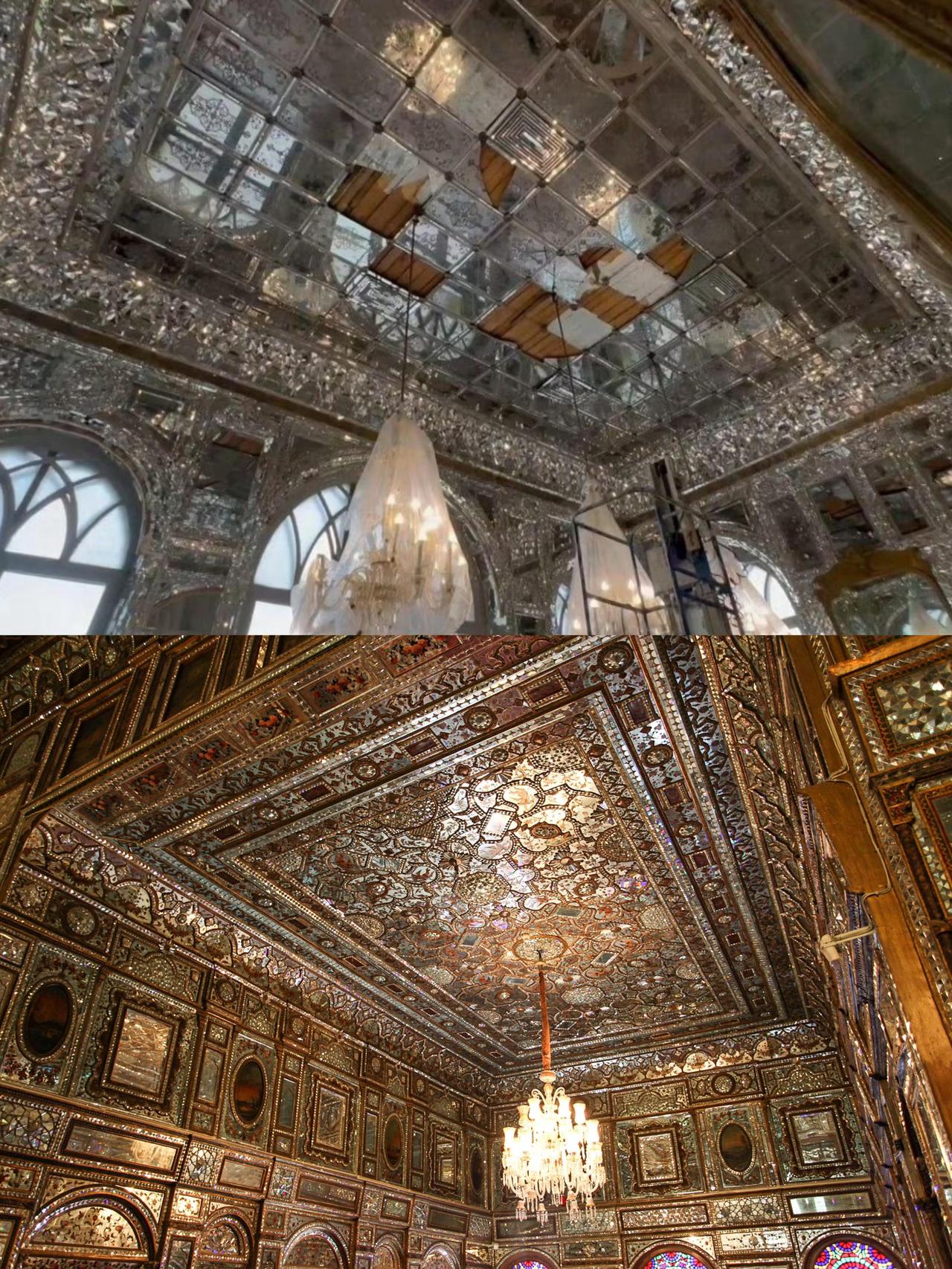 伊朗世界遗产玫瑰宫,就这样被战火损毁💔了[快哭了] 德黑兰的古列斯坦宫,也叫玫瑰宫,是伊朗的“故宫”,2013年列入世界文化遗产。它融合波斯传统与西方建筑之美,明镜殿满墙手工镜片,是波斯工艺的巅峰。 3月2日受袭击波及,镜厅碎裂、吊灯坠落,这些不可再生的文明瑰宝,遭受不可逆的伤害。愿悲剧不再重演,愿世界和平。🙏