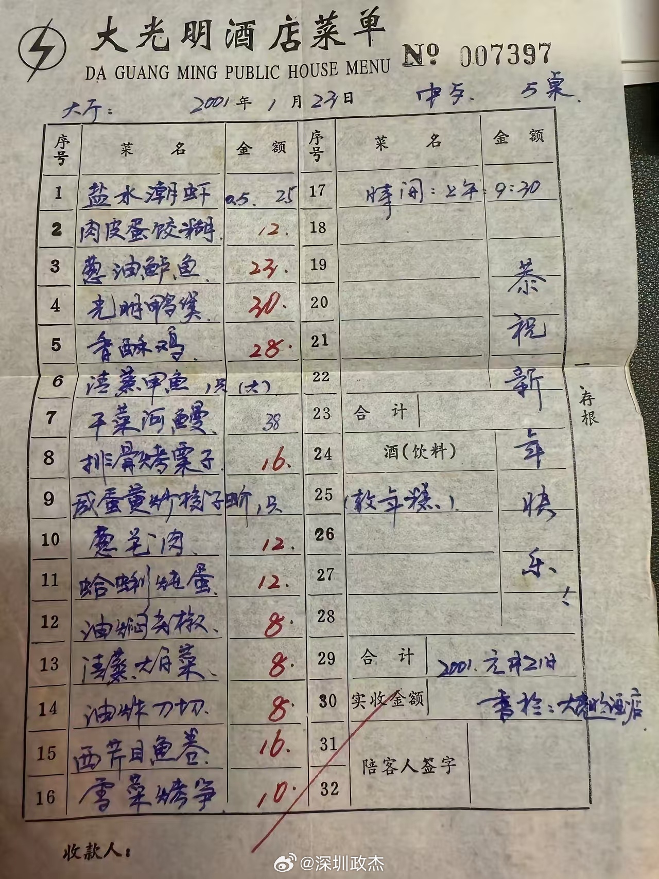 2001年餐厅物价,那时候普通人工资500-600元一个月,吃顿大餐大半个月工资没了。