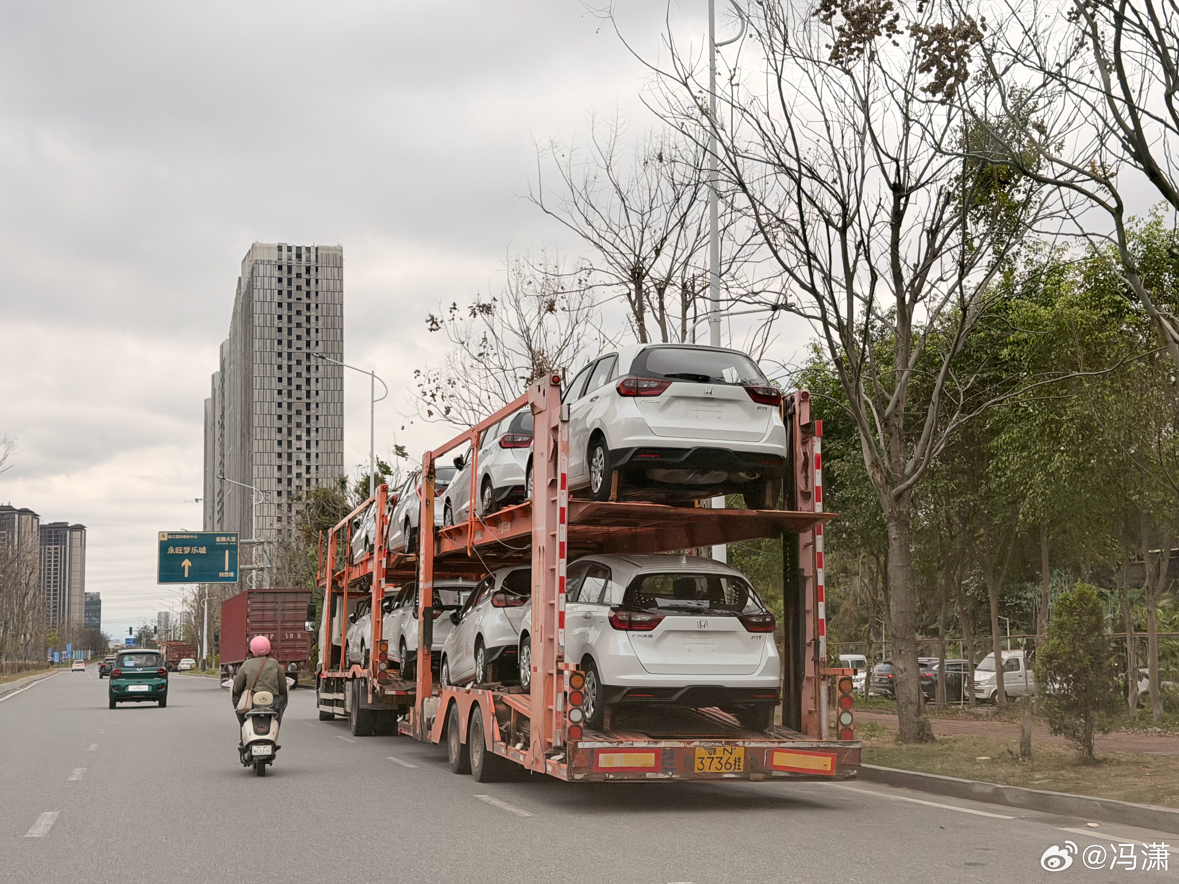 一车白色的新本田飞度,据说卖的很好,老款降价也挺多但无人问津,这一限量,抢着买!