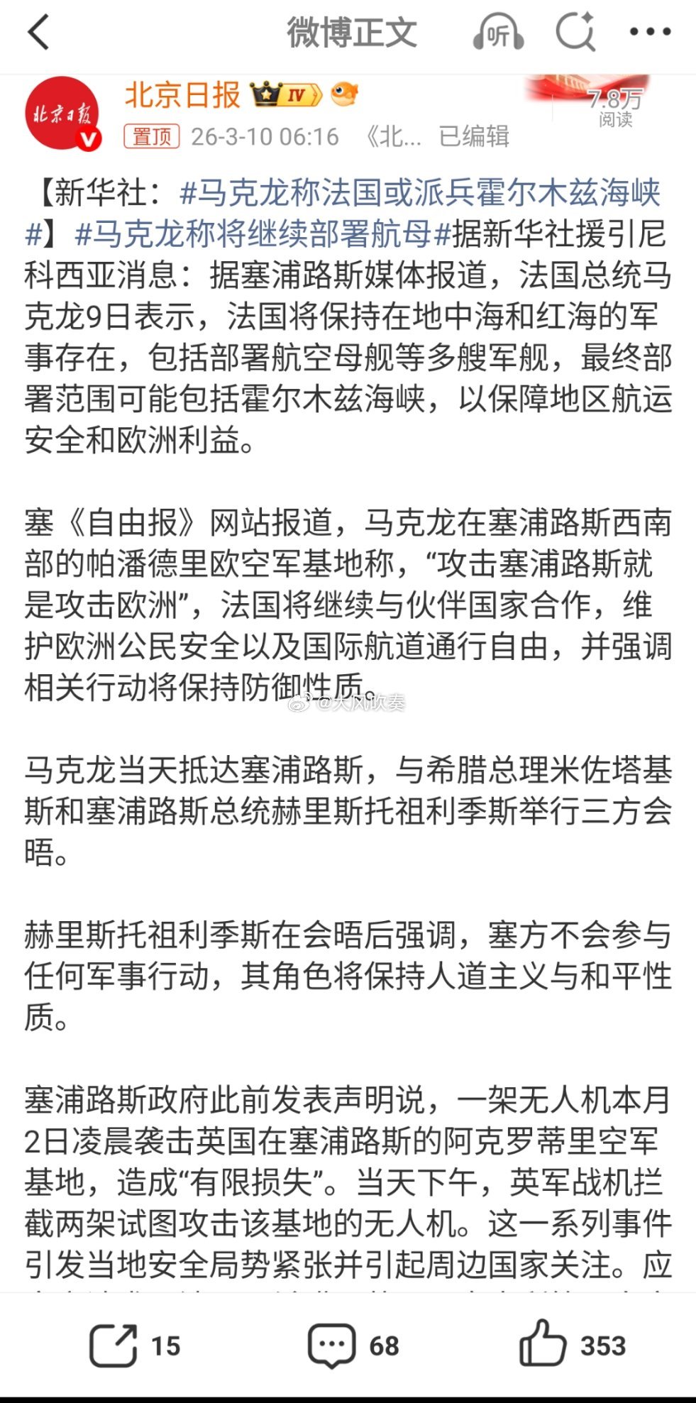 马克龙称法国或派兵霍尔木兹海峡义乌可以囤货白裤衩了,法国人肯定需要。热点观点