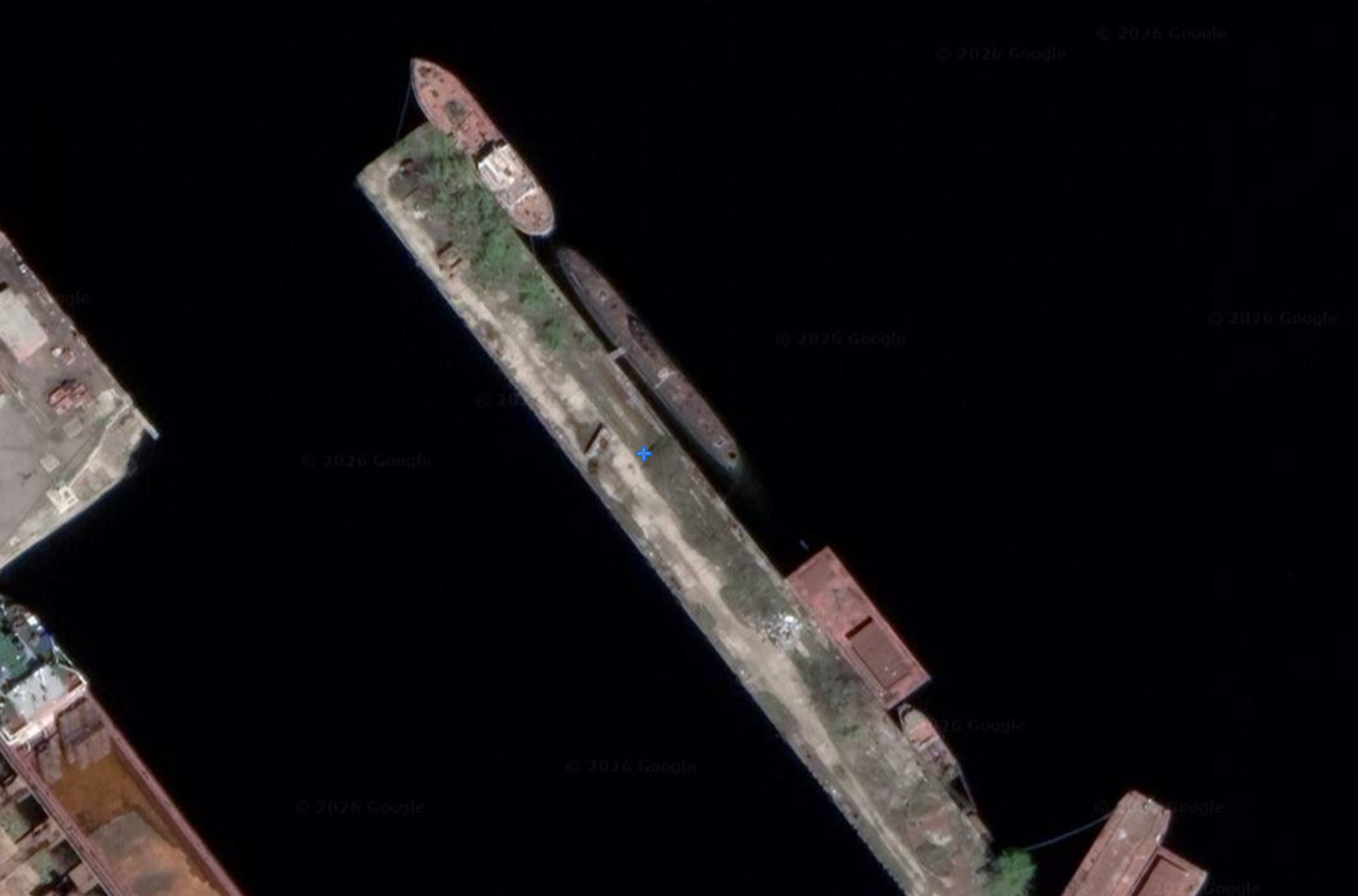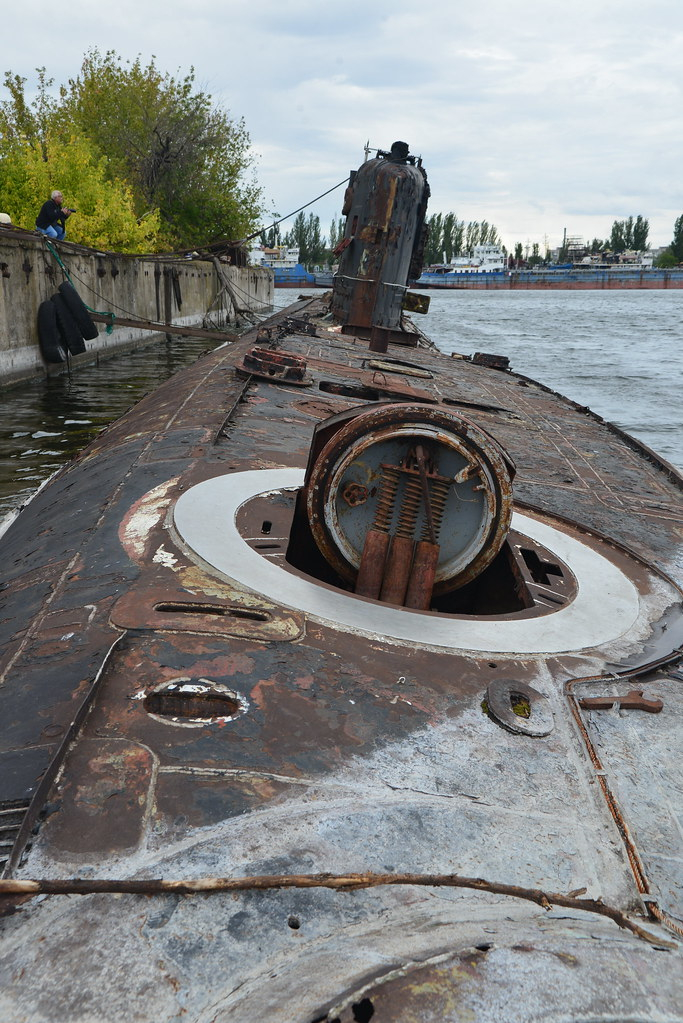 烽火问鼎计划每天认识一件兵器 赫尔松造船厂内至今仍然坐沉着一艘690型靶标潜艇(46.608056°, 32.590000°)。690型SS-310艇于1990年退役后原计划改为潜艇博物馆,但自2001年后便一直被遗忘在赫尔松造船厂的一个码头旁。