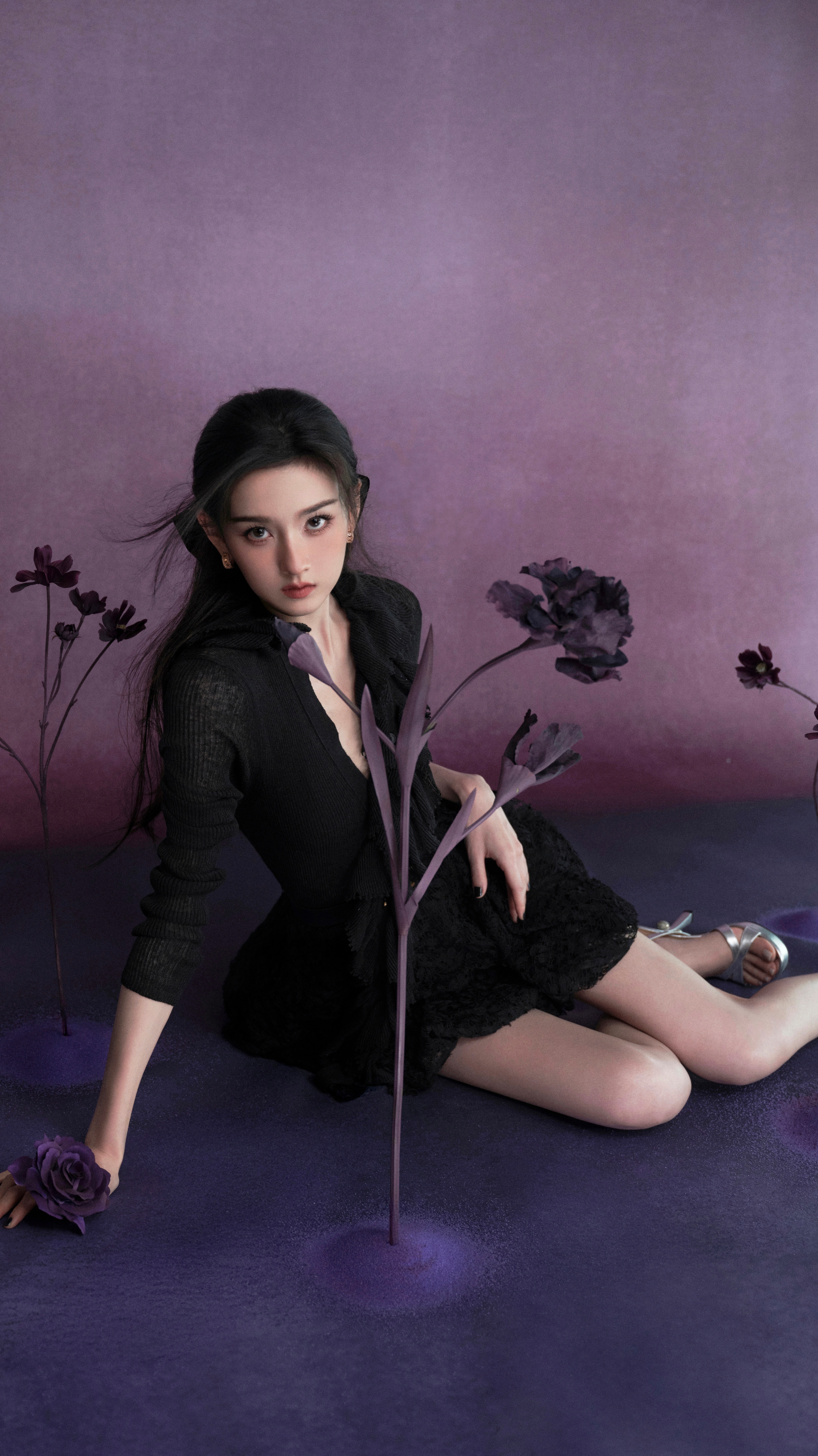 孟子义写真壁纸,银色抹胸裙,蝴蝶旖旎交织精致感满分。孟子义