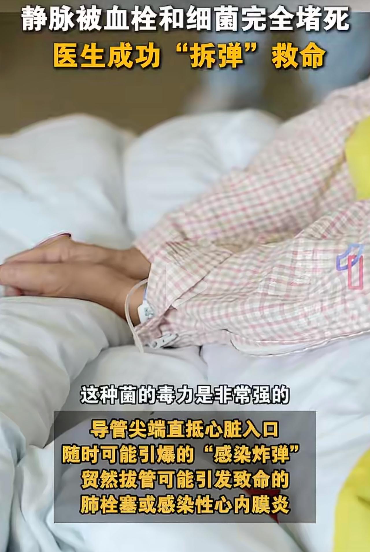 李女士胃癌康复十三年,胳膊上一直带着深静脉输液管,谁成想这根管子早就被血栓和细菌堵死了,硬生生在体内成了一个大感染源。 连着九天高烧不退,吃药打针全不管用,人被烧得浑身没劲,家里人跟着着急上火,跑遍医院都找不着病因。 最后仔细一查才真相大白,导管里全是血栓,还附着一层厚厚的细菌膜,普通抗生素根本渗不进去,再拖下去真要出大事。 这种长期留着的输液管,看着是省了反复扎针的疼,可时间久了特别容易长血栓、闹感染,很多人都没把这隐蔽的危险放在心上。 真不是装上就万事大吉,但凡出现没缘由的发烧、插管地方红肿疼,千万别拖着,赶紧去医院检查。 身体里的这些医疗管路,半点都马虎不得,一时大意,可能就要付出健康的代价。胃癌胃炎 输液管 健康警示