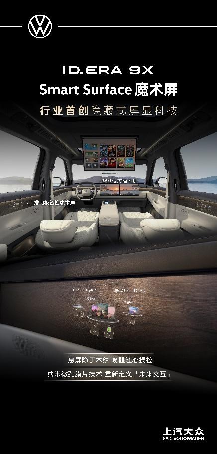【2026产品大年首款旗舰 上汽大众ID. ERA 9X正式启动量产,高端增程市场将迎来“德系选择”】 3月5日,ID. ERA 9X在宁波工厂正式启动量产。 ID. ERA 9X定位为“德系满级旗舰SUV”,车身长宽高分别为5207mm×1997mm×1810mm,轴距3070mm。动力上,新车搭载EA211黄金增程器,配合宁德时代65.2kWh大电池,CLTC纯电续航超400km。 目前已公布“大漠金”与“仙踪绿”两款车色。内饰配备15.6英寸双联屏、21.4英寸后排吸顶大屏及12.8米环舱氛围灯。首次搭载行业领先的Smart Surface魔术屏技术,采用微孔膜片工艺,在屏幕关闭时与内饰材质完美融合,实现“只见材质不见屏幕”的隐形式美感;点亮后画面清晰通透,无纹理干扰。二排门板的Smart Surface魔术屏触控区,集温度、座椅、冰箱调节于一体。更值得一提的是,该屏幕可呈现补盲影像,当乘客按下开门键,屏幕实时显示车外后方画面,以可视化提醒规避侧后方风险,从源头预防“开门杀”。 后续,新车在辅助驾驶及智能化配置方面的完整能力将陆续揭晓。 这款肩负冲击高端增程市场使命的旗舰车型,作为ID. ERA序列的开篇之作,标志着上汽大众全能源战略布局的全面开启。【来自懂车帝车友圈】