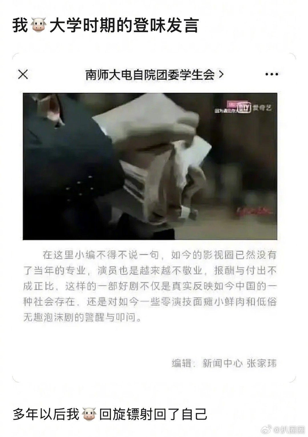 张凌赫大学时期的文字发言被考古出来了~