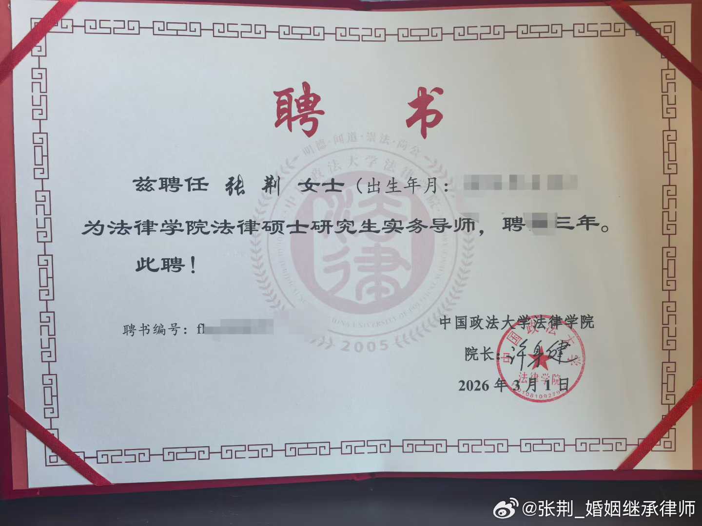感谢中国政法大学的信任与厚爱,第三次获聘,继续努力。
