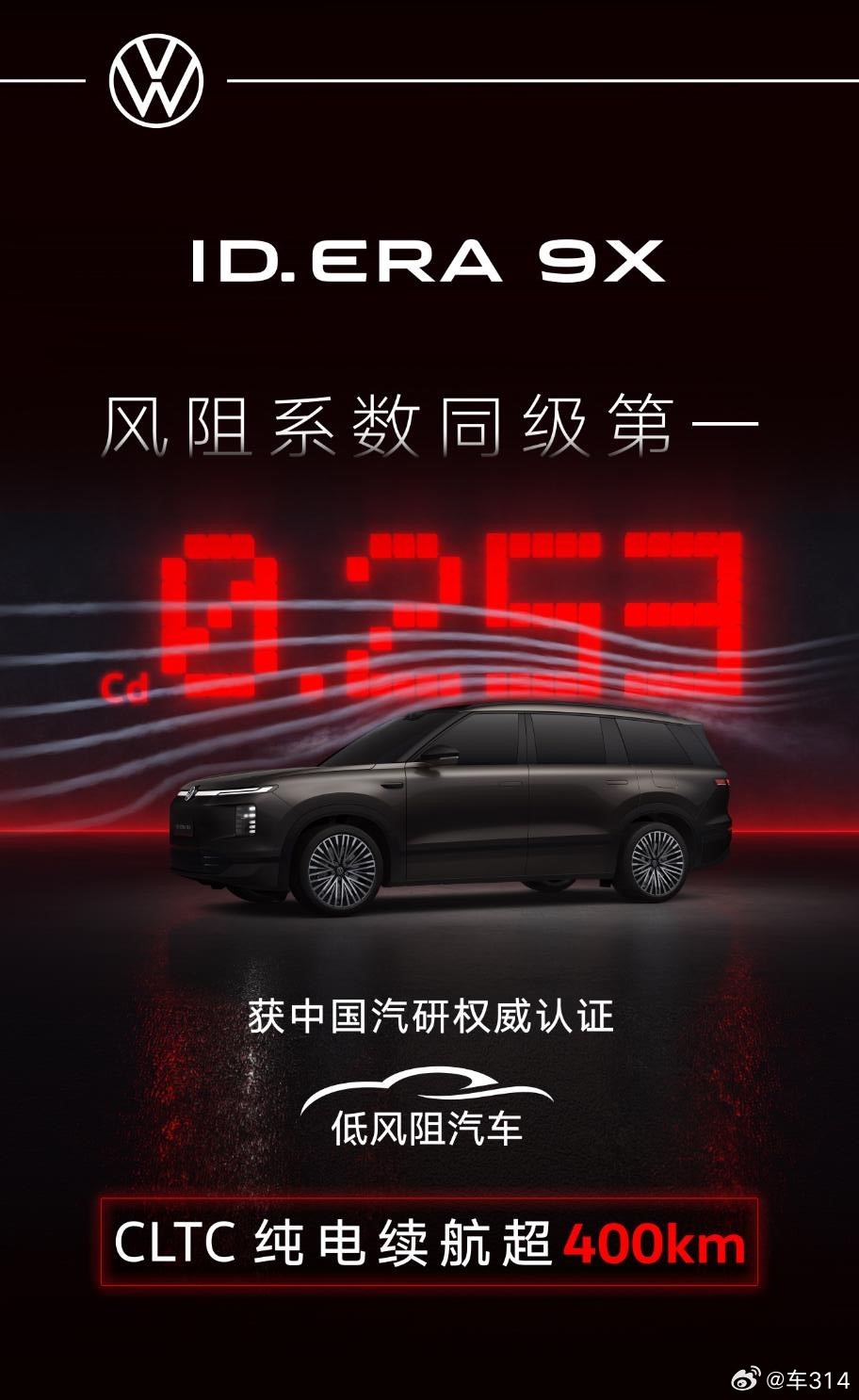 大众ID.ERA 9X的风阻系数只有Cd 0.253,位列同级第一,这个成绩是有点没想到的,因为这个尺寸的SUV都是方方正正,想要获得极致的低风阻就需要从每个细节里去抠,不仅考验流体力学设计,更是少不了吹风洞。看来上汽大众确实为这车投入了不少!而它的配置也是德系车中少见的“全盘新势力化”,冰洗电几件套应有尽有,德国大众跟中国企业的深度合作带来了这样的作品,非常期待市场表现!大众9X九大黑科技IDERA9X大众9X德系满级旗舰SUV