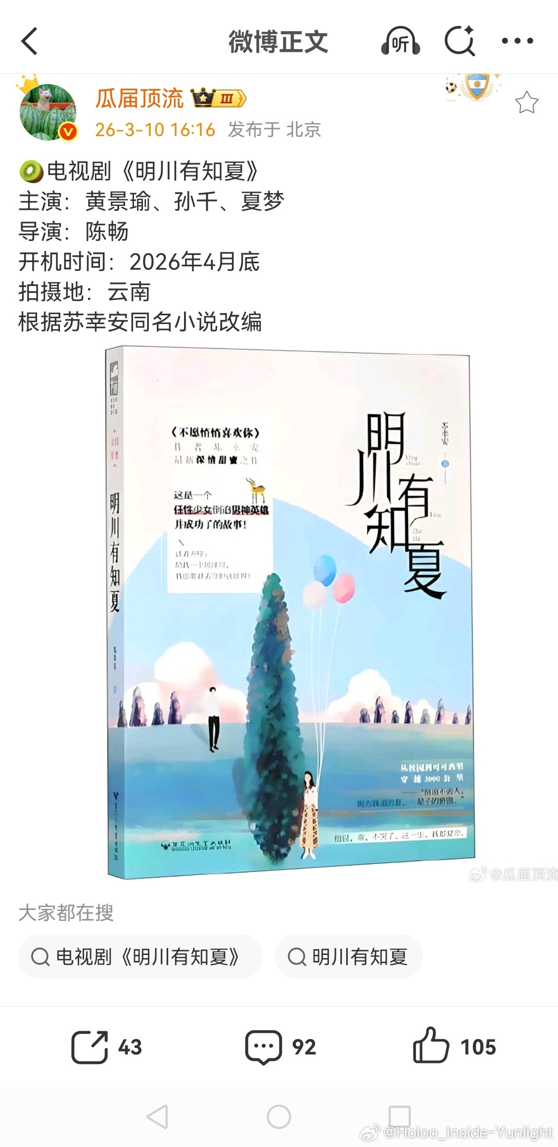 金晨因为肇事逃逸事件丢掉了和黄景瑜合作的《明川有知夏》这个饼,现在这个剧变成了黄景瑜和孙千二搭,明星还是要准纪守法,不能踩红线