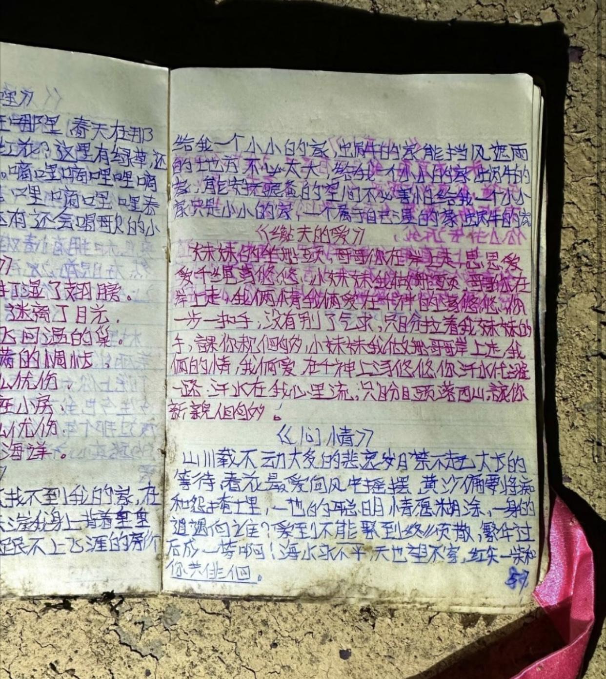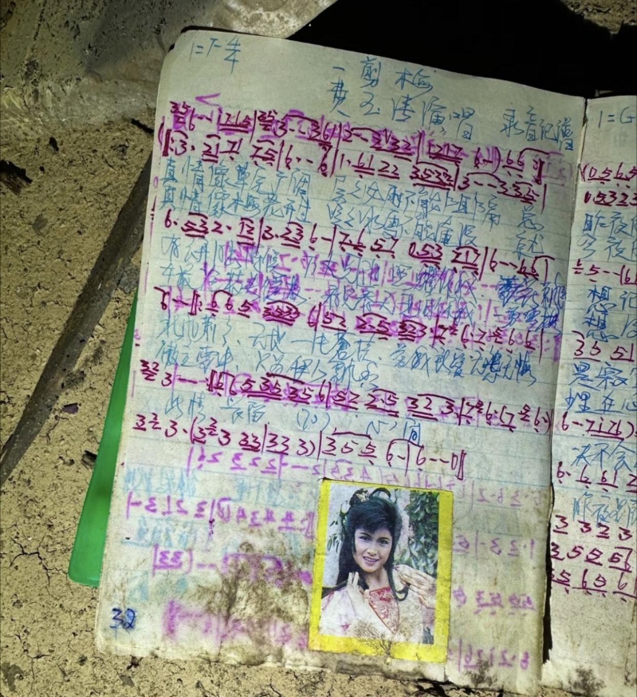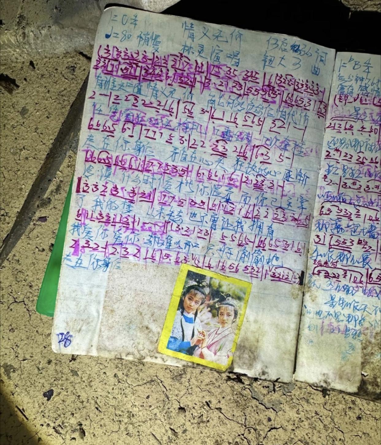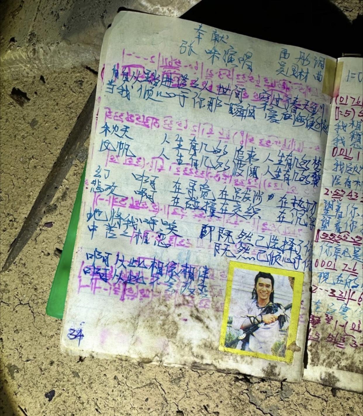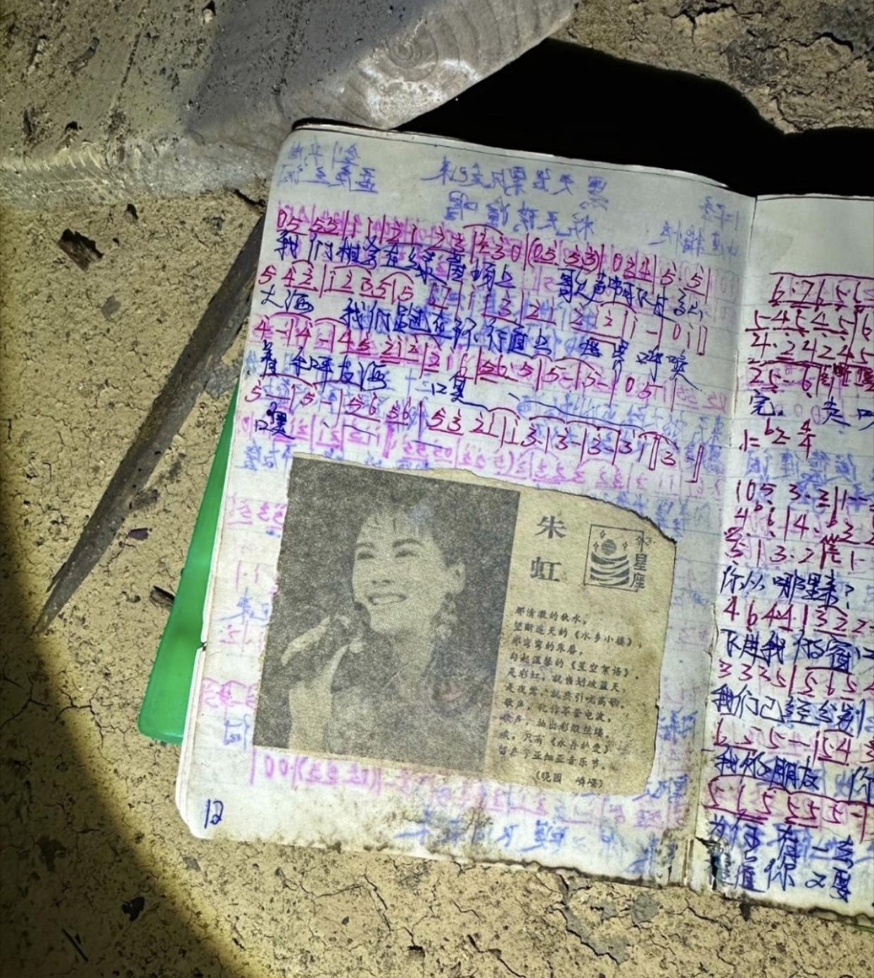 这些有点破旧的笔记本,写着的文字和贴的图片,虽然看着已不太清晰,但却是一些人的青