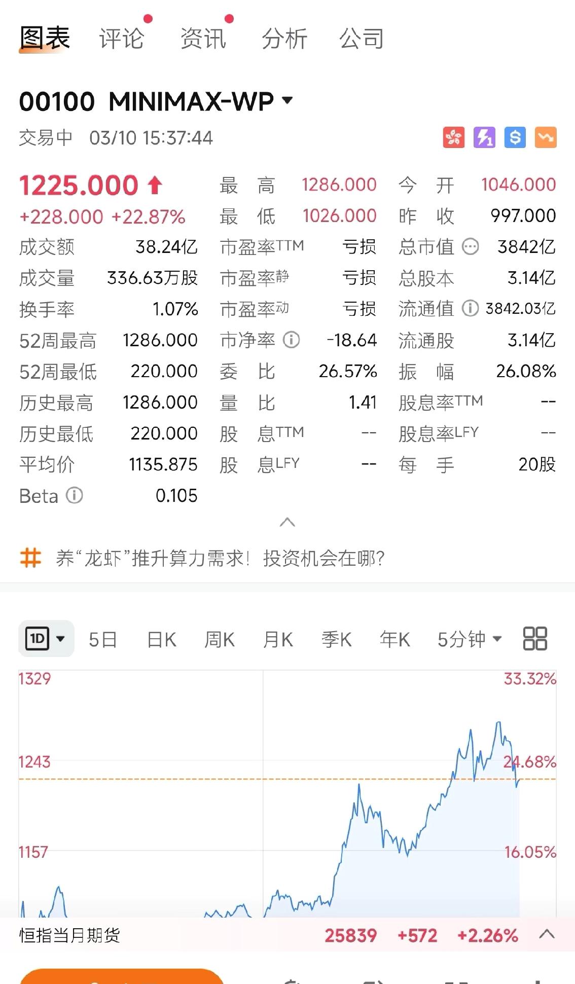 Minimax市值超过百度了 3月10日,MiniMax收涨超22%,总市值达3826亿港元,超越百度。截至收盘,百度上涨2.90%,总市值3322亿港元。 当年的AI六小龙,如今已经成长为了和百度并肩的存在,这就不得不艾特某个人了。