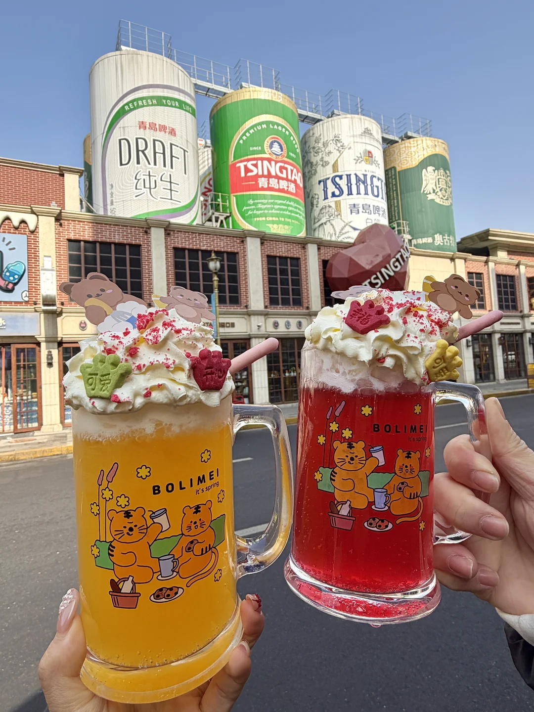 跪求来青岛一定要试试这个小熊奶油啤酒!! 真的喝不腻!奶呼呼的奶油顶➕手打啤酒我一口气都可以喝两杯!不夸张!这家📍老青岛戳子肉)真会来5678次的那种! 就在啤酒博物馆!近期和室友来青岛的干饭根据地!主打的戳子肉好吃到不行,用饼包着肉吃好幸福!价格也实惠我们人均四五十就很满足了!还点了香辣蟹拌面、手抓海鲜香晕了🥹傍晚坐着喝酒吃海鲜尊嘟!好幸福