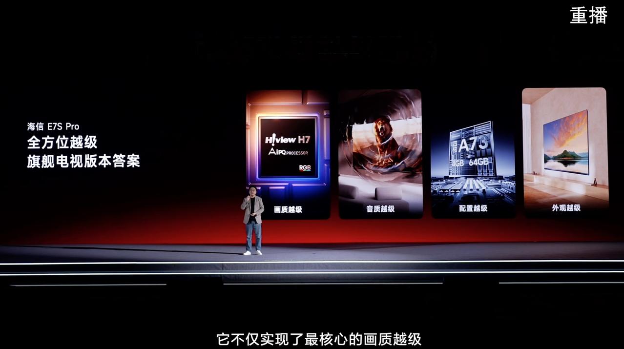 海信E7S Pro RGB-Mini LED电视发布 玲珑真彩背光+信芯AI画质芯片H7 行业最高 4K 180Hz 原生高刷色彩 黑曜屏Pro 四核A73+4GB+64GB组合 53mm超薄贴墙安装,标配 8mm 超薄挂架 2.1.2声道帝瓦雷声学系统,165W功率 星聚桌面升级到2.0版本 100英寸补贴价格18499 85英寸补贴价格11499 75英寸补贴价格8499 65英寸补贴价格6999