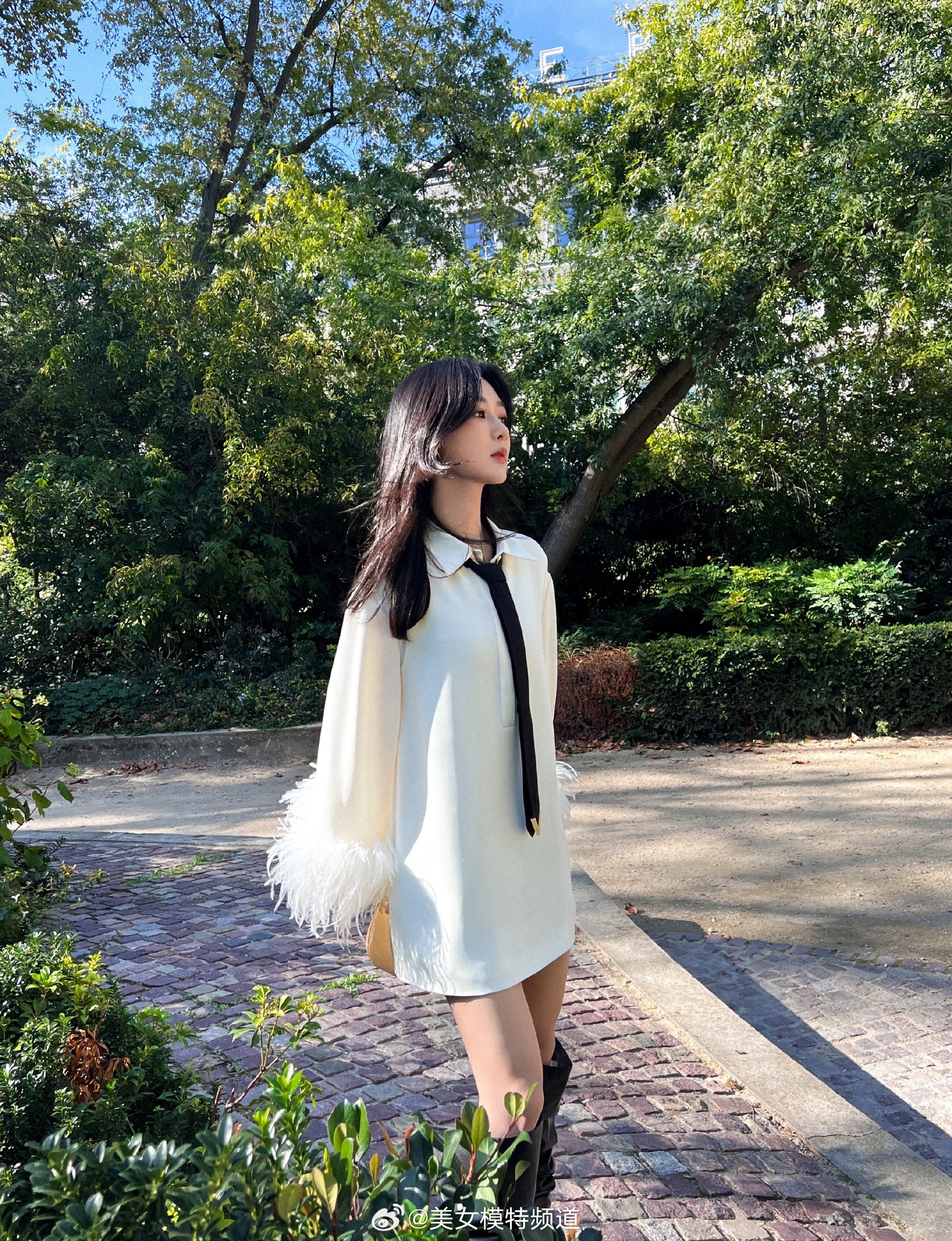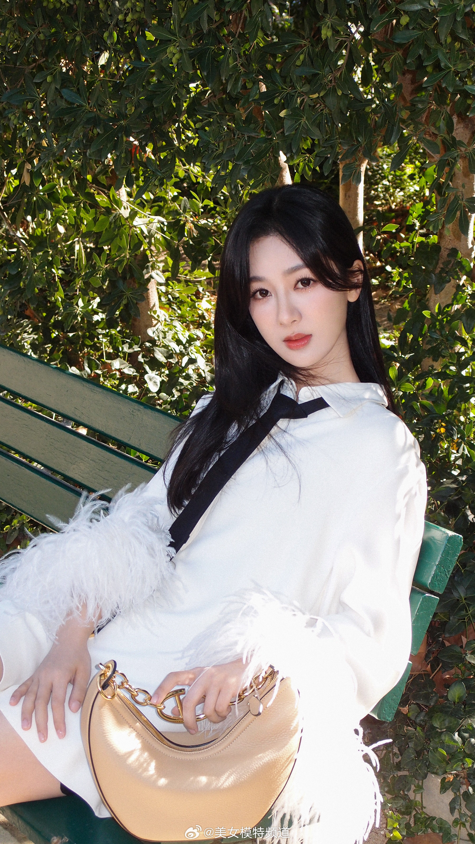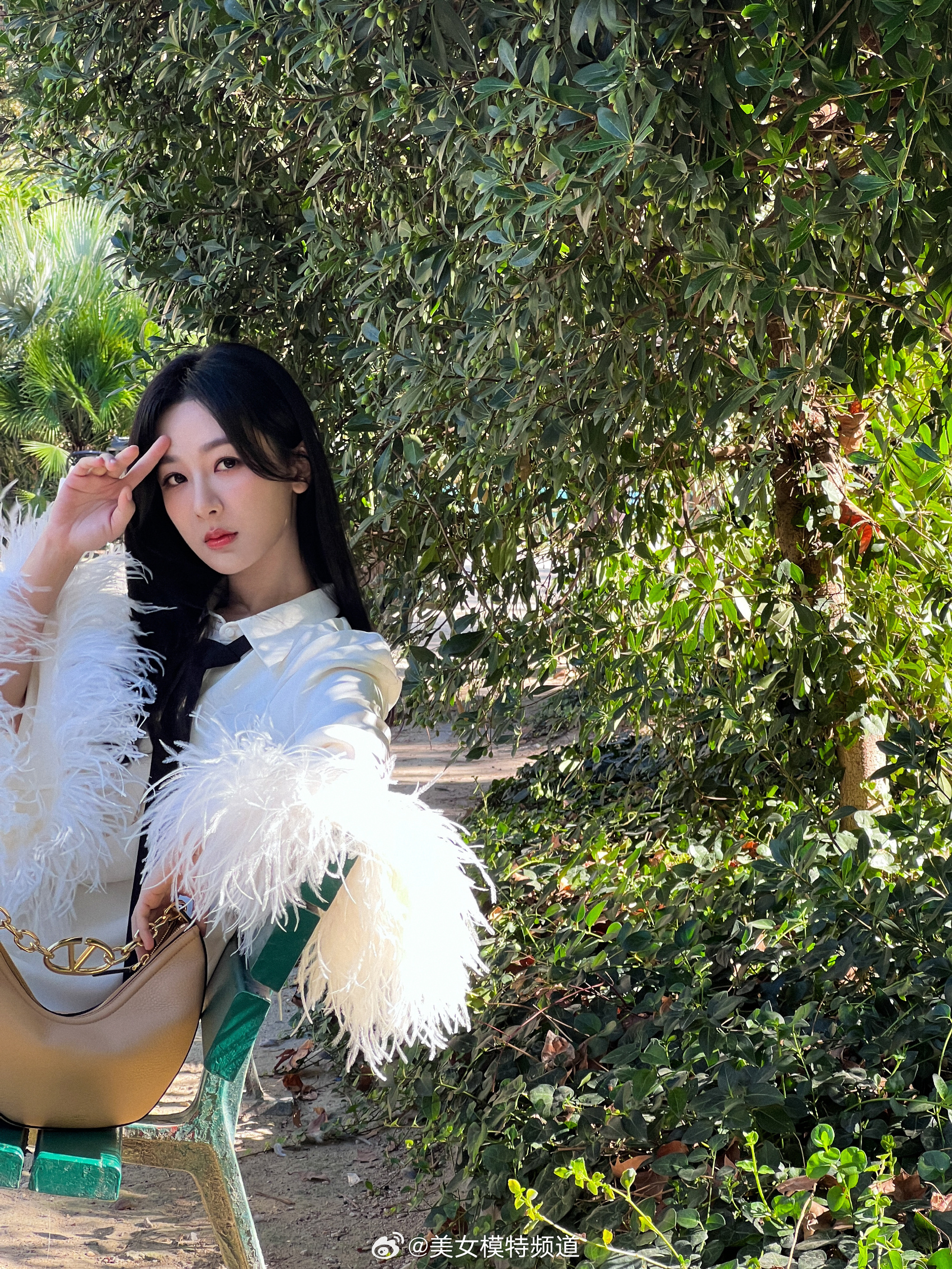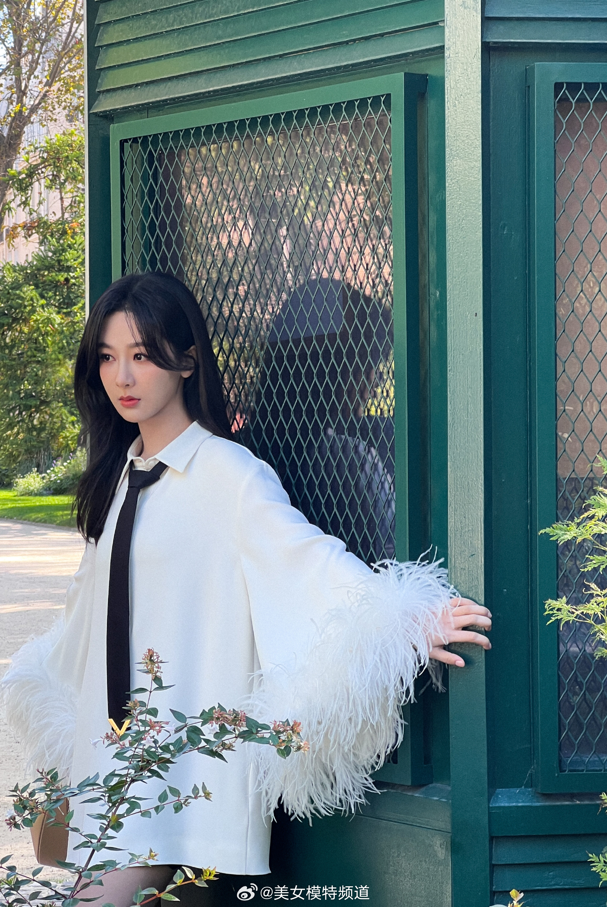 杨紫羽毛袖白衬衫造型