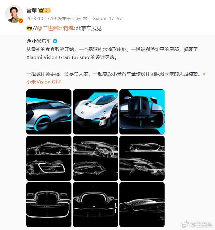 雷总官宣了,小米超跑Vision Gran Turismo北京车展见。虽然是台概念车,但这车在外网的讨论度真的非常非常高。