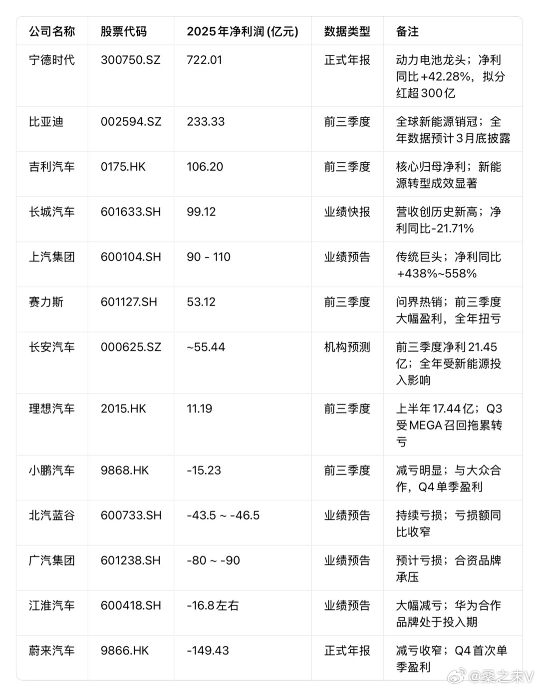 2025年国内主流车企 & 动力电池龙头财务数据整理。毛利率、研发投入、盈利结构差异显著,行业分化持续加剧:
