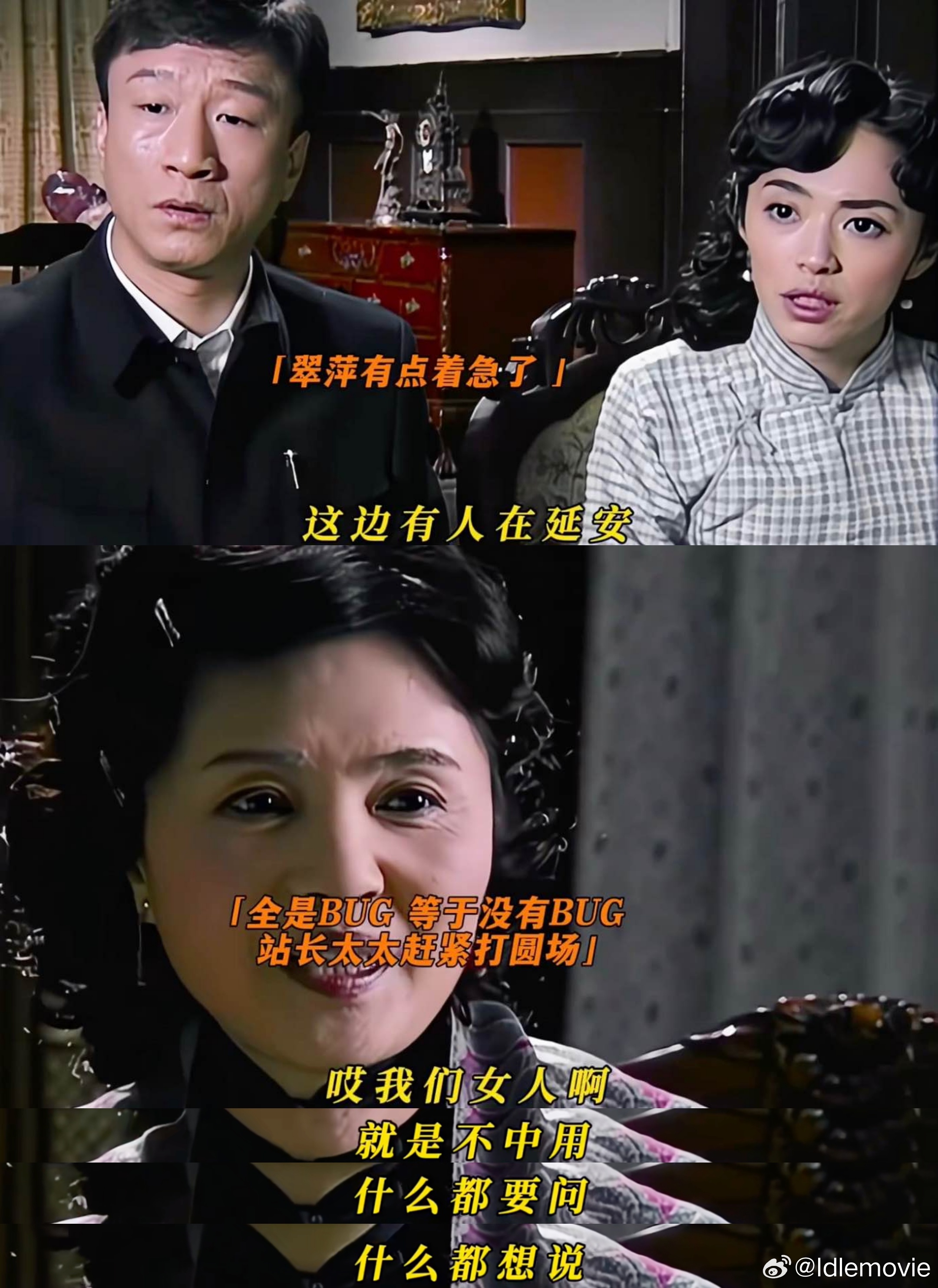 如戴笠飞机失事,梅姐说可能有人用金条把开飞机的人给收买了,翠萍满脸清澈的愚蠢,脱口而出:“飞机是人开的呀。”