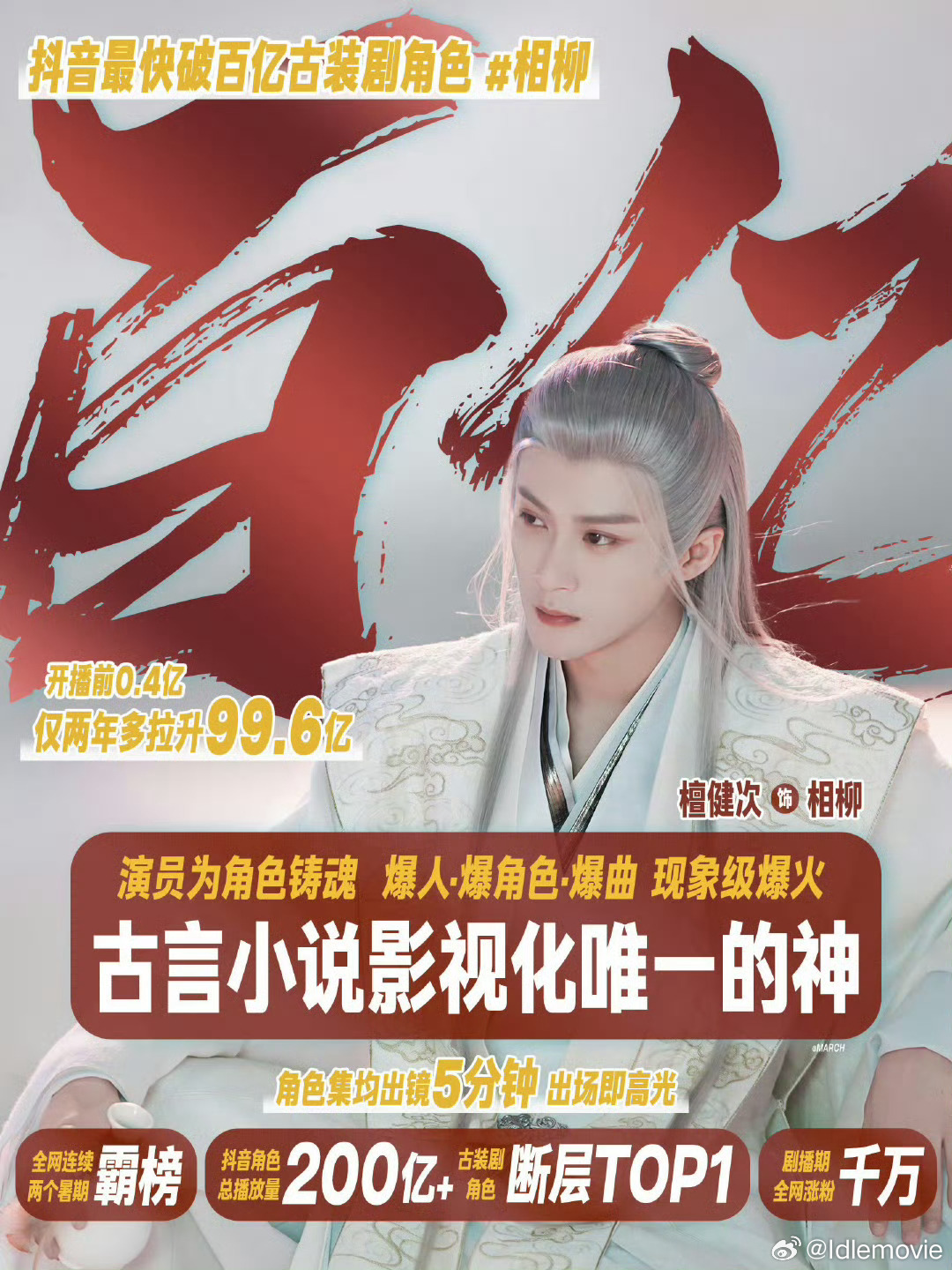 相柳话题破100亿喜大普奔,值得骄傲,与有荣焉,古偶史上第一个破百亿角色,由檀健次的相柳创造,再加分流话题共190亿,史无前例,这已经不是长尾效应了,而是爆尾不断。