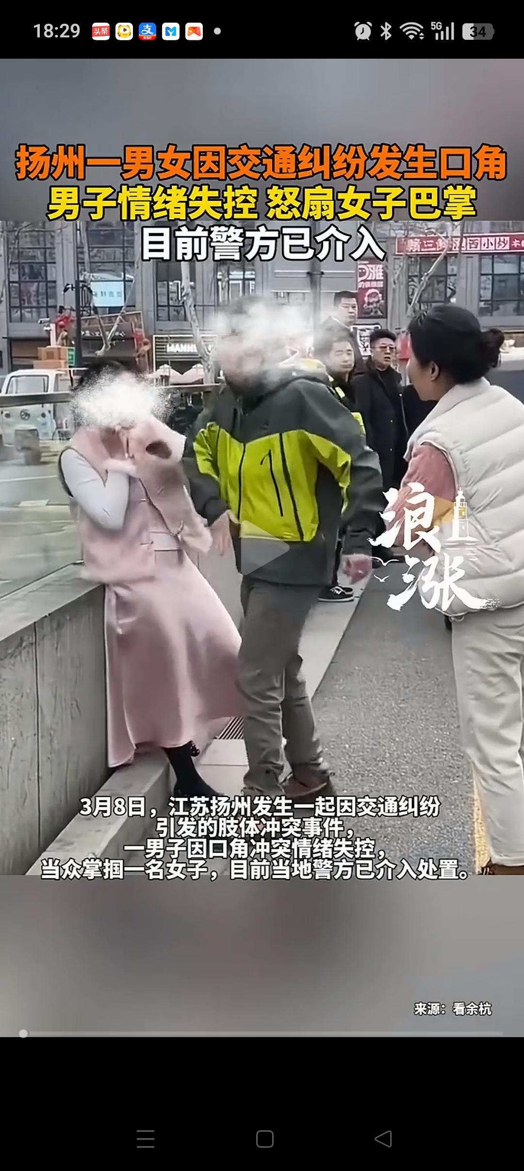 太冲动了!一巴掌毁了自己!扬州,一男子因交通事故纠纷,一巴掌重重的打在了女子脸上