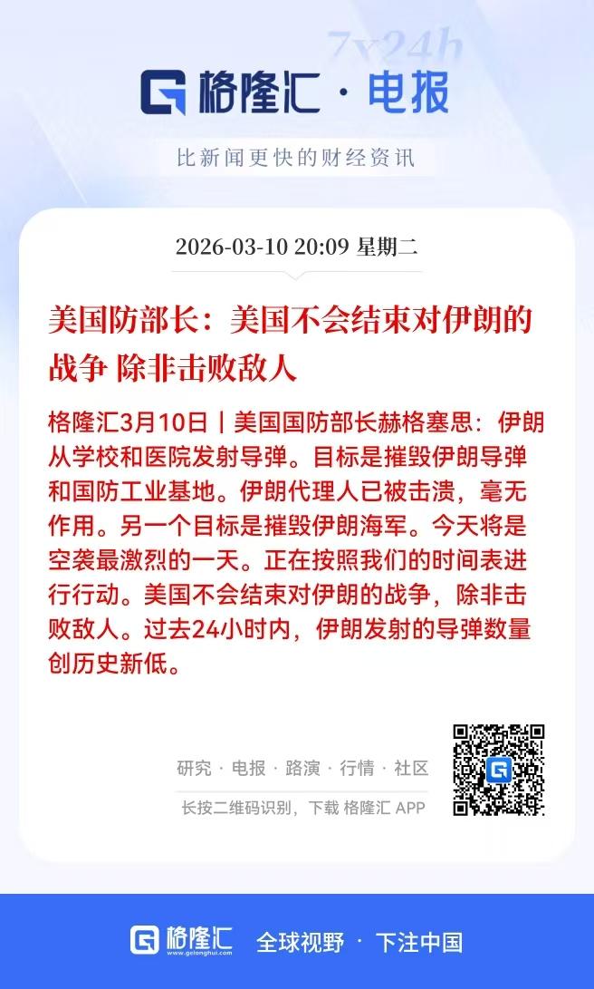 完犊子!美国国防部长表态不会结束对伊朗的战争,这是什么鬼? 刚刚美国国防部长表示,美国不会结束对伊朗的战争,除非击败敌人。过去24小时内,伊朗发射的导弹数量创历史新低。 大哥,你这是逗我们,逗全世界玩呢? 昨天老特才表示,战争基本快要结束了!为此,原油暴跌,全球资本市场沸腾,各种大涨,各种修复。 这时间才没有过一天,态度又来了一个180度大反转! 这是真的逗咱们玩吗? 果然,美国人的嘴,骗人的鬼! 希望中东战争快点结束啊,不然操作太难了!