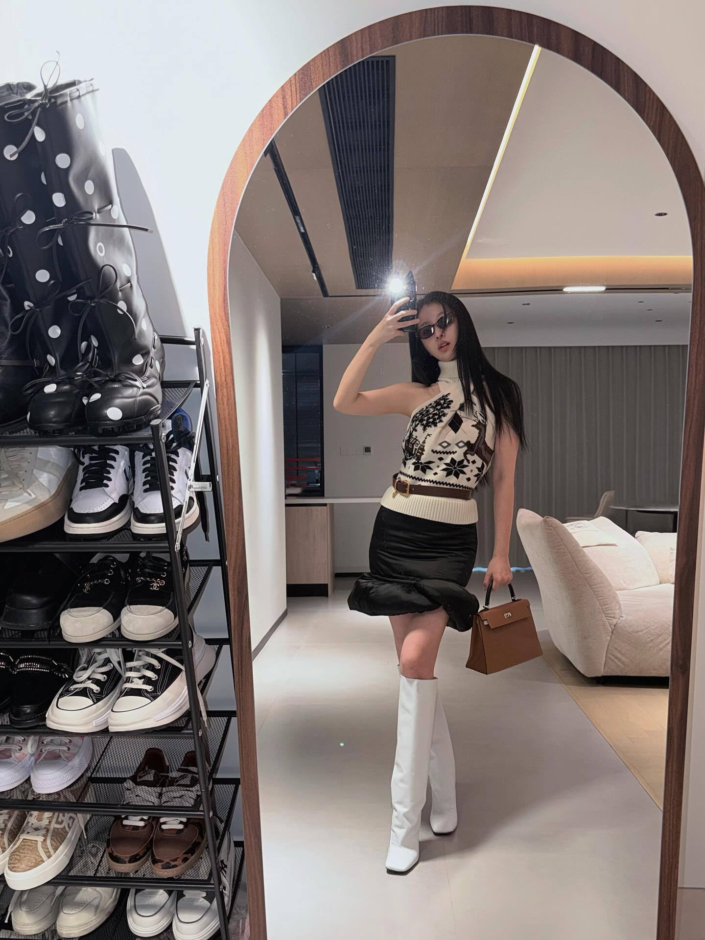 刘亦菲这条裤子挺养生,毕竟降温了肚脐眼必须护住啊