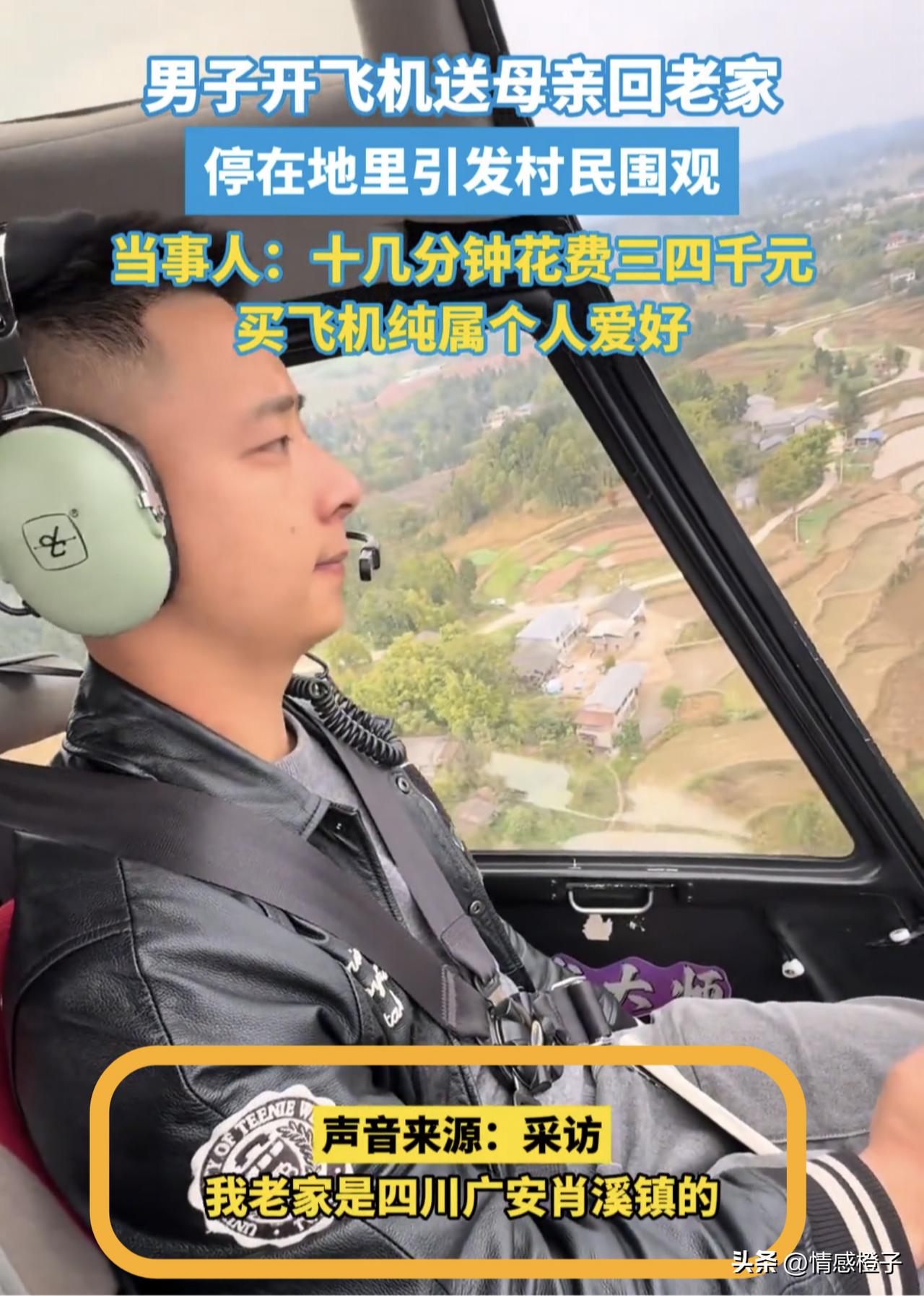 四川小伙开直升机送母亲回老家[赞] 航程十几分钟,花费四千多元,村民赶来现场看热闹 四川广安这位小伙,对母亲真有孝心啊[笑哭]。3月10日有媒体报道,因母亲想回老家看看,男子直接开直升机送过去,数十公里的路程十几分钟就送到,把村里人都吸引过来看了。 村民们全围过来看热闹,毕竟开直升机回家,这场面可不常见[捂脸]。小伙这顿操作,也把网友们看乐了。 网友说小伙的母亲,现在能给村民显摆了[大笑]。这趟飞下来花了4000多块,确实也不便宜,但人家舍得为母亲花费[赞]。 别人开豪车回家就够气派了,他是开直升机回家,这才叫真本事[赞]。年轻人有梦想肯努力,这值得肯定[灵光一闪]。 小伙愿意给家人付出,这样的孝心让人很羡慕。这事你是怎么看的?评论区聊下吧[灵光一闪]。