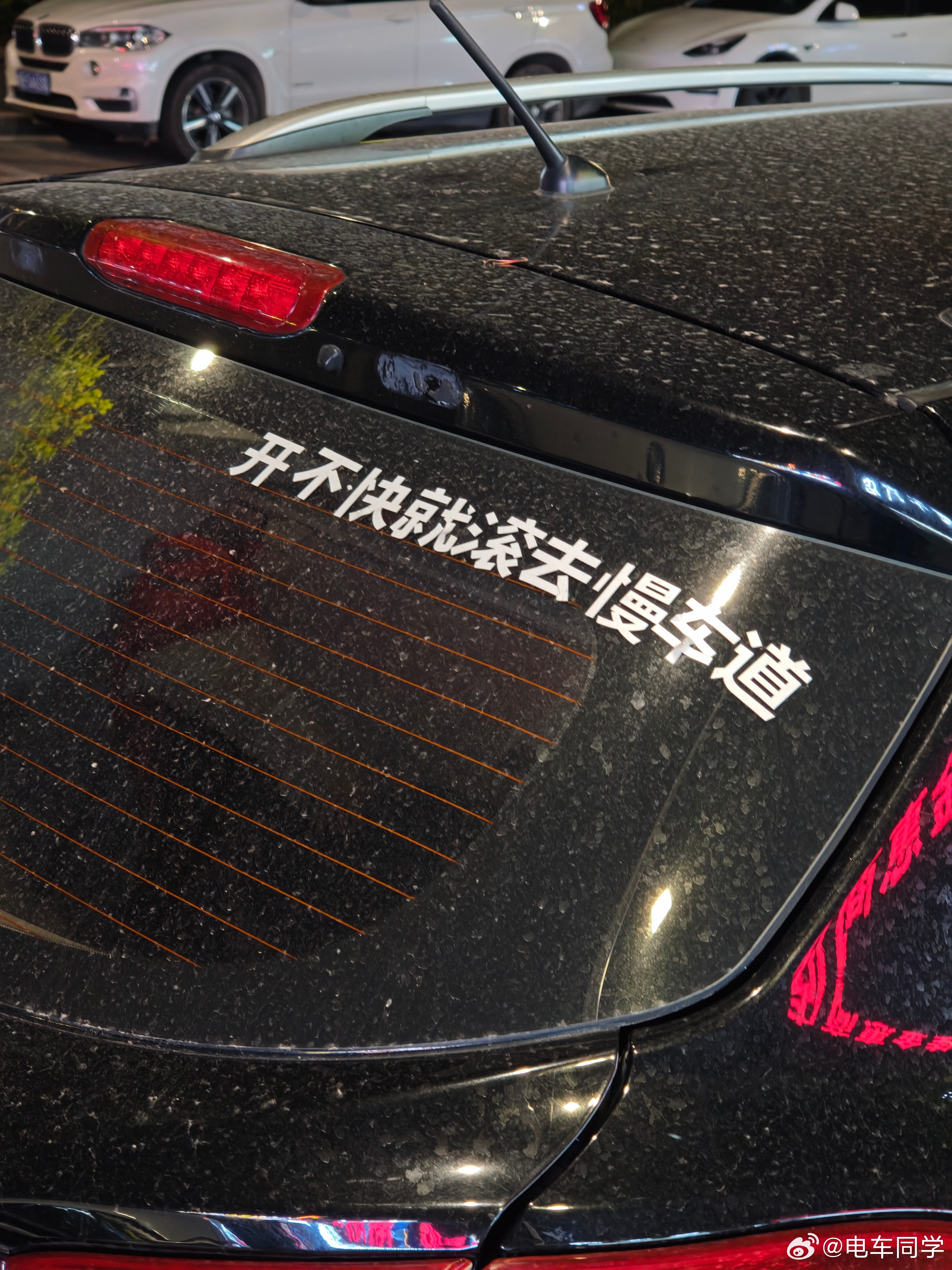 我说实话,首先车有点脏,其次我觉得这个贴在后面好像没有什么用。