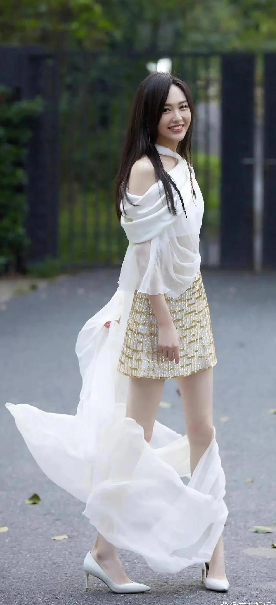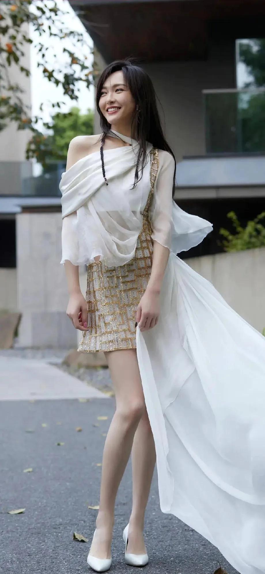 唐嫣这身材真的不讲道理!白色飘纱裙+金色亮片短裙,仙气飘飘又灵动,大长腿又细又长,状态好到犯规✨ 唐嫣 明星身材 仙气穿搭