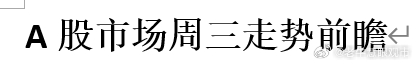 A股市场周三走势前瞻