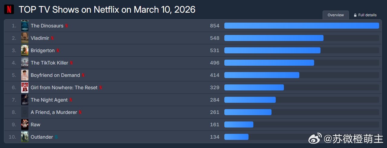 2026年3月10日网飞积分排名~🔥第五位:订阅男友 金智秀x 徐仁国积分414(+20)2个国家/地区排第一位,69个国家/地区排名前10~