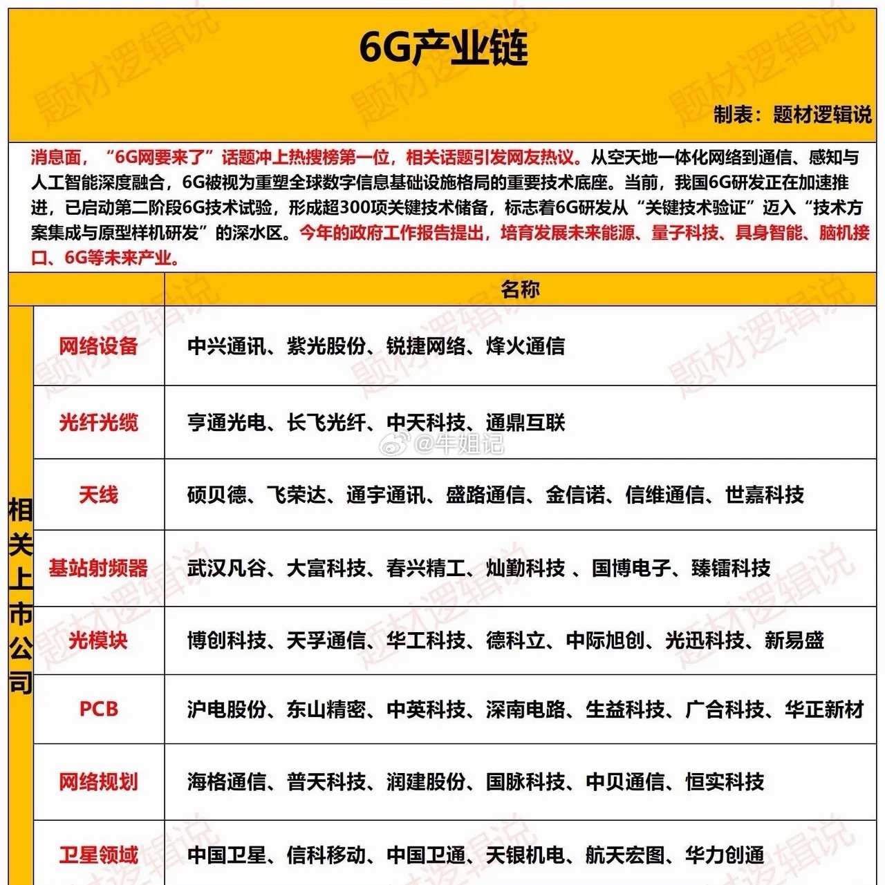 6G产业链核心概念股梳理