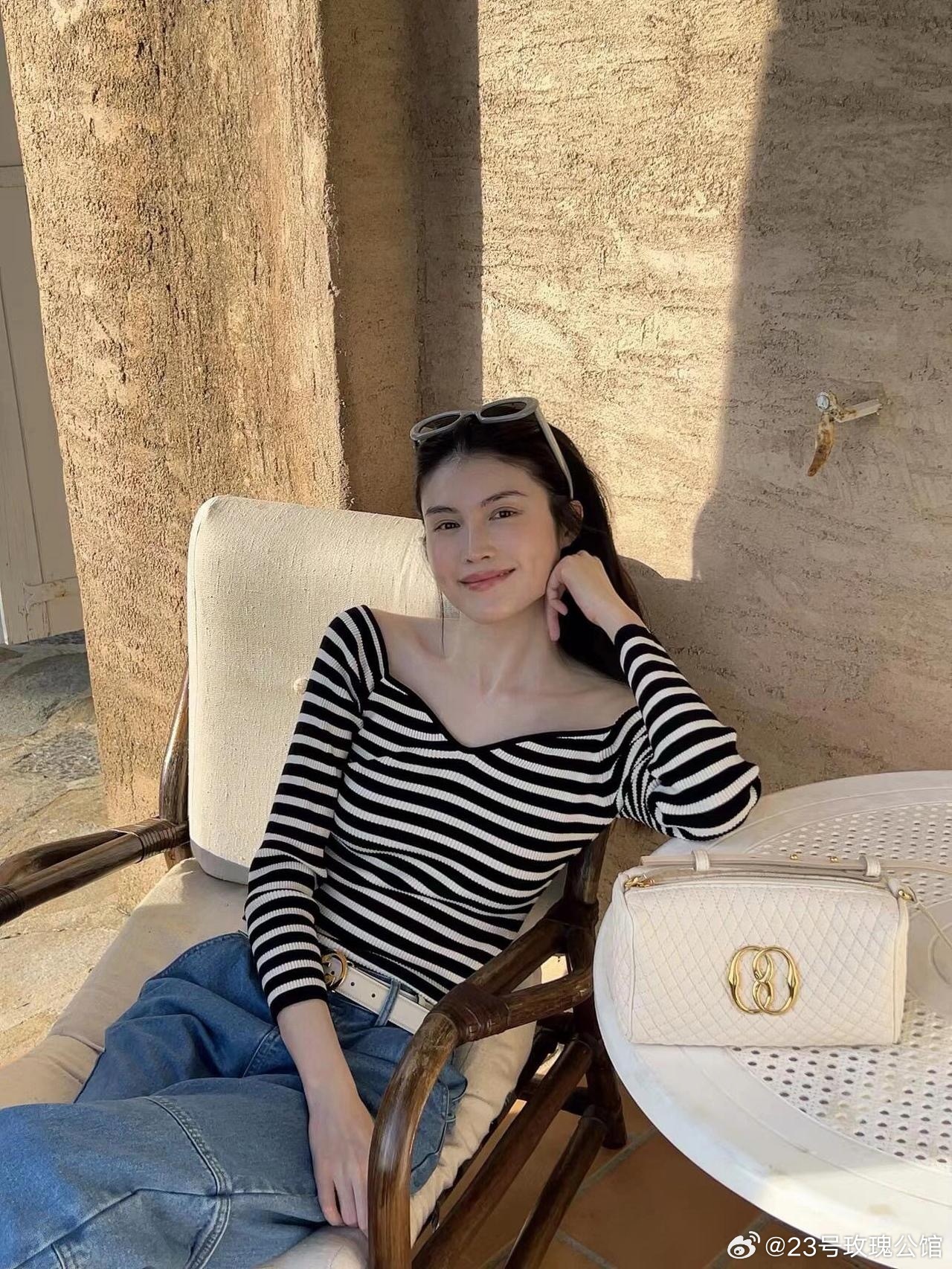 何穗当妈后状态大回春!穿露肩条纹衫+牛仔裤,时髦又高级!
