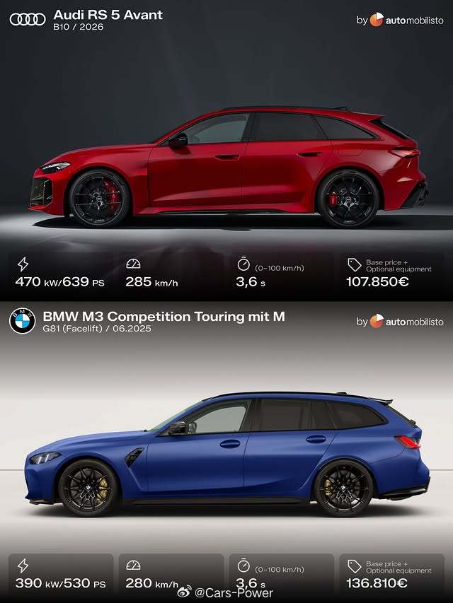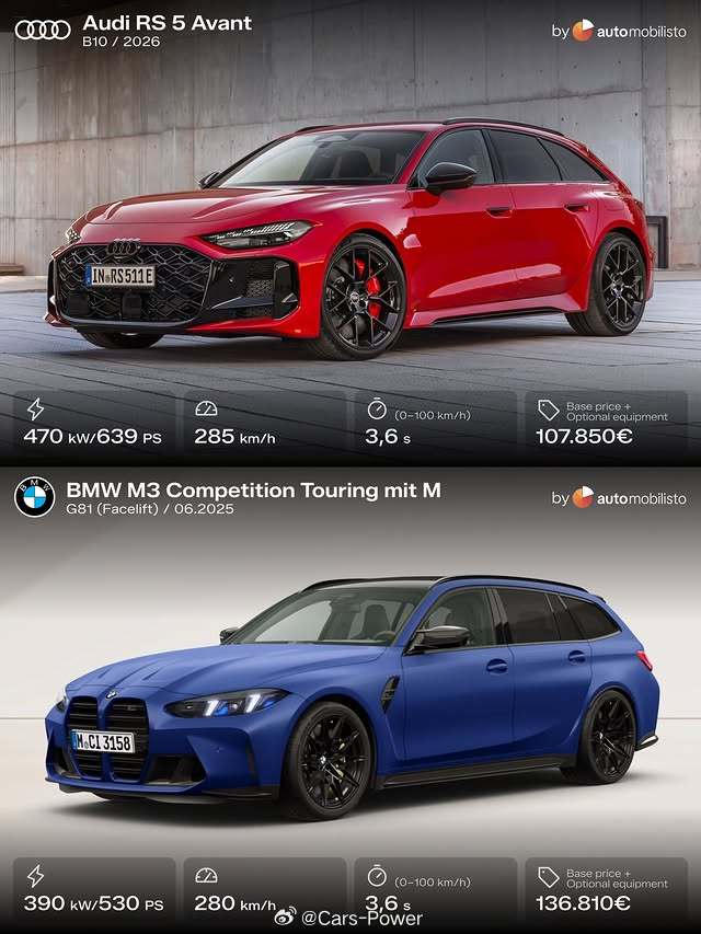 最热门的高性能瓦罐车🚀全新奥迪RS5旅行🚀宝马M3雷霆旅行你选谁?