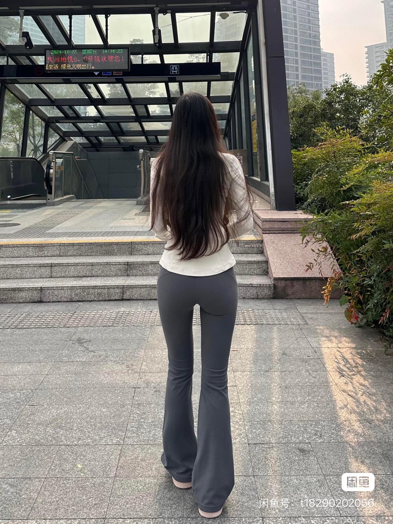 一个长发女孩站在地铁口。