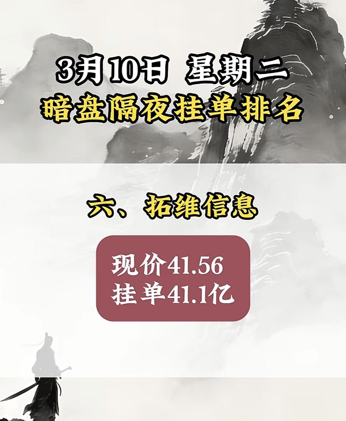 3月11日暗盘隔夜挂单揭晓 3月10日美利云这情况可太引人注目了!暗盘隔夜挂单排名第三,现价17.94,买单高达126.99亿。早盘9点30分还触及了涨停板,所属的IT服务行业也在上涨。它可是大数据、东数西算/算力、云计算数据中心概念热股,当日相关概念都有不同程度涨幅。不过前一天3月9日,主力资金净流出1.14亿元。这复杂的资金流向和市场表现,让人不禁好奇美利云后续走势,是继续高歌猛进,还是会有反转,真是充满悬念。