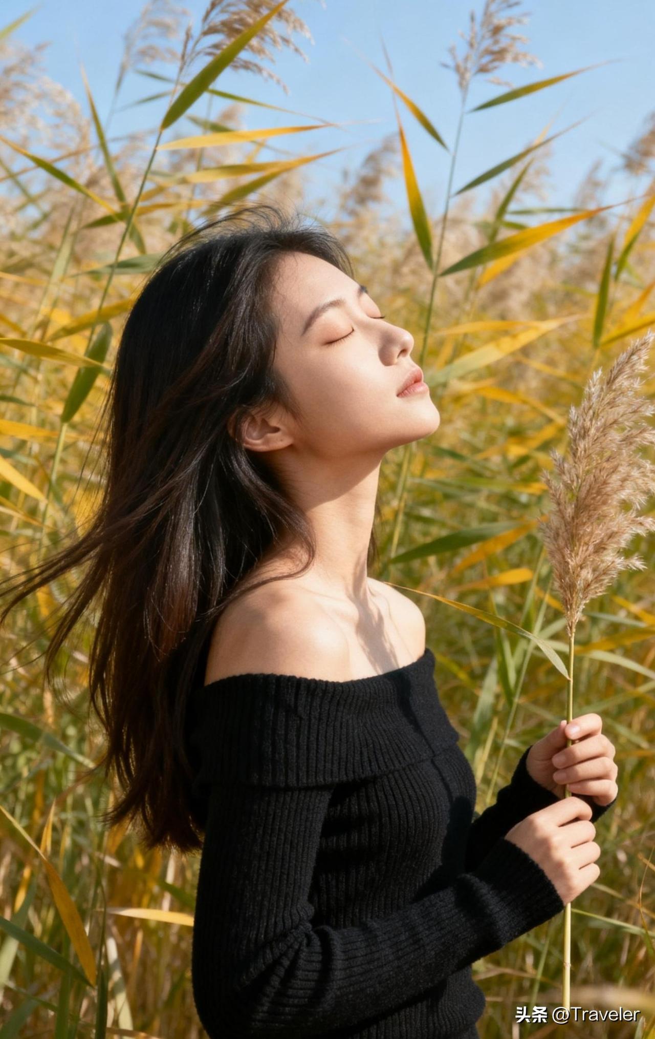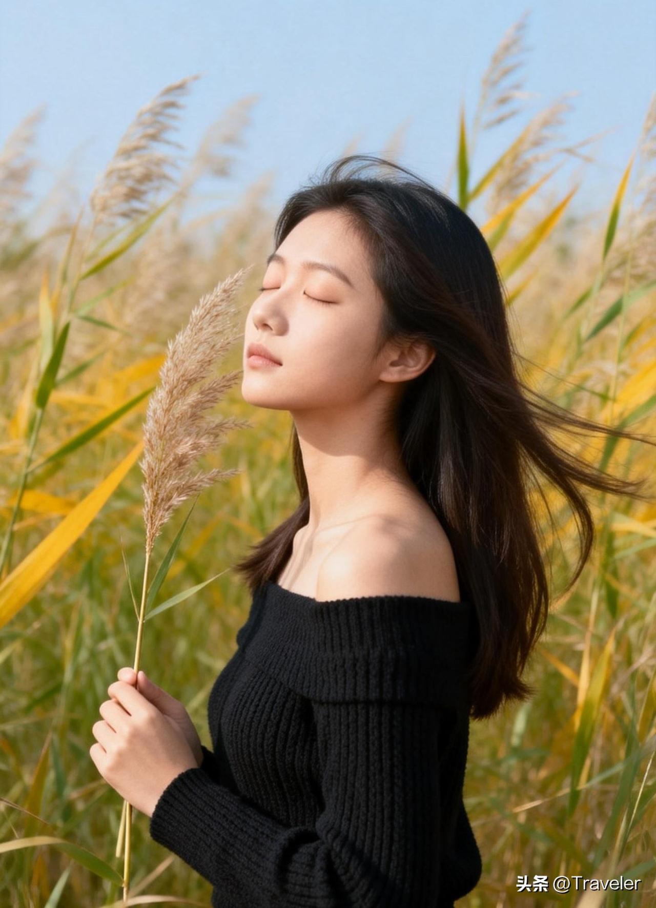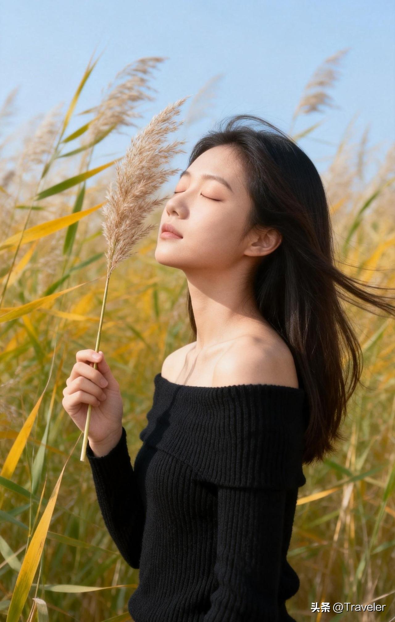 夜晚的街灯下,微笑的女孩,红裙飘逸,美如画卷。