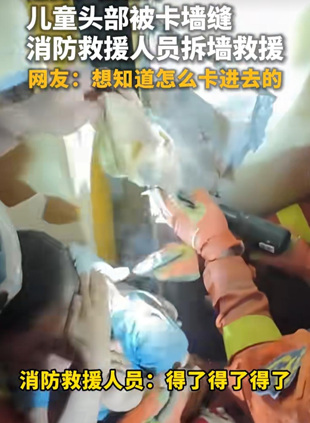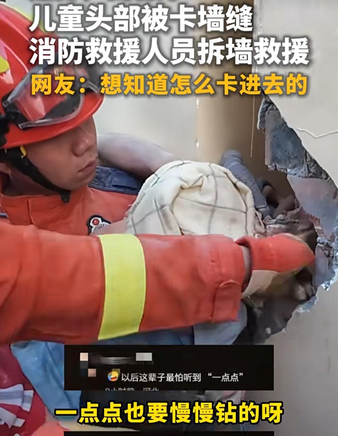近日,广西北海一段“熊孩子”头卡墙缝的视频刷屏全网。画面中,一个小男孩的头部被死死卡在两堵墙的缝隙之间,消防员们不得不动用工具,小心翼翼地拆墙救援。 更让人哭笑不得的是,被卡的孩子一边哇哇大哭,一边还问妈妈你管这叫一点点,妈妈安慰到一点点也要慢慢钻。直到消防员把他成功救出。 这一幕让无数网友在评论区炸开了锅:“想知道他是怎么卡进去的?‘’ “这孩子的好奇心也太旺盛了吧!” “还好只是虚惊一场,要是真出了事,后果不堪设想。” 在孩子的世界里,每一个角落都充满了未知的诱惑。 他们会把头伸进栏杆,会把手指插进插座,会好奇地去触碰那些看似无害的缝隙。 这些看似天真的举动,背后却隐藏着巨大的安全风险。 作为父母,我们无法时刻把孩子拴在身边,但我们可以教会他们: 哪些地方是危险的,哪些东西不能碰,遇到危险时该如何求助。 比起事后的自责和补救,事前的安全教育才是守护孩子成长最坚实的铠甲。墙缝 惊险又好笑