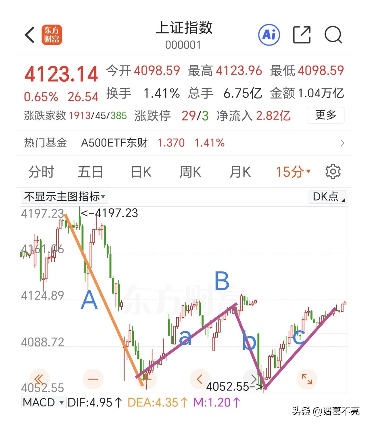 等待选择好方向再去跟随操作。 指数面临方向选择了,现在有两种浪形: 1.如图一所示,昨天的上涨是走的B浪里的c段,今天可能稍微冲高后快速回落走C浪。 2.如图二所示,一组调整的ABC已经走完,现在走的是新一轮的上涨。这样的走势会由5分钟向上的上涨推动日线结构的上涨。 作为小散只能跟随主力的脚步,方向是主力选择的,等到选择完方向,再去操作。 向下砸的时候,要明白是机会而不是风险。 向上涨的时候,要看力度,回踩破不破中枢。 大盘分析行情 市场板块分析 指数企稳 A股策略周评 大盘要跌吗 市场趋势预判 指数要回落