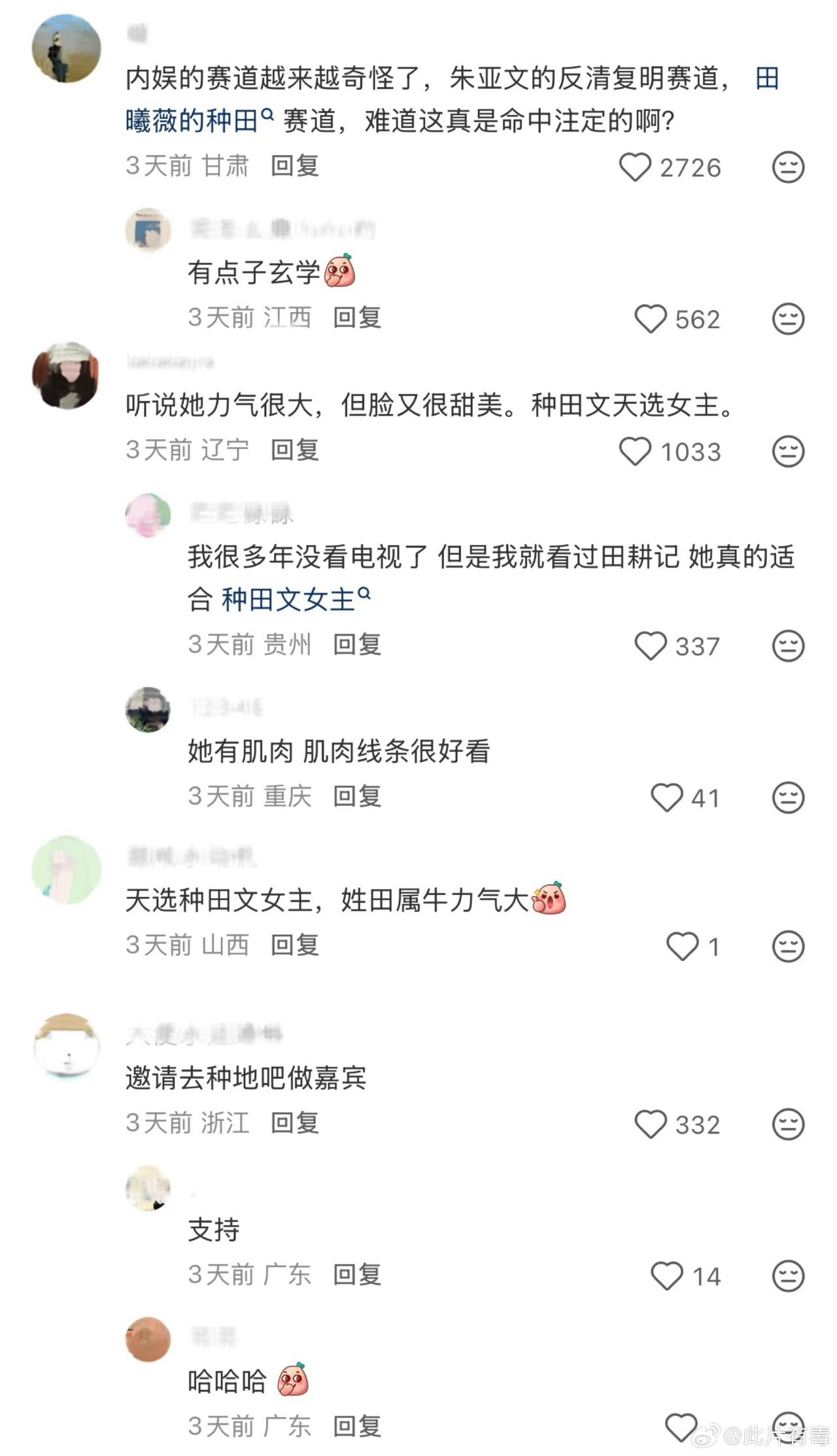 田曦薇,在各种剧里干农活,内娱独一份的赛道[笑哭] 网友:天选种田文女主,姓田属牛力气大[吐舌] 逐玉卿卿日常田耕纪嫁金钗