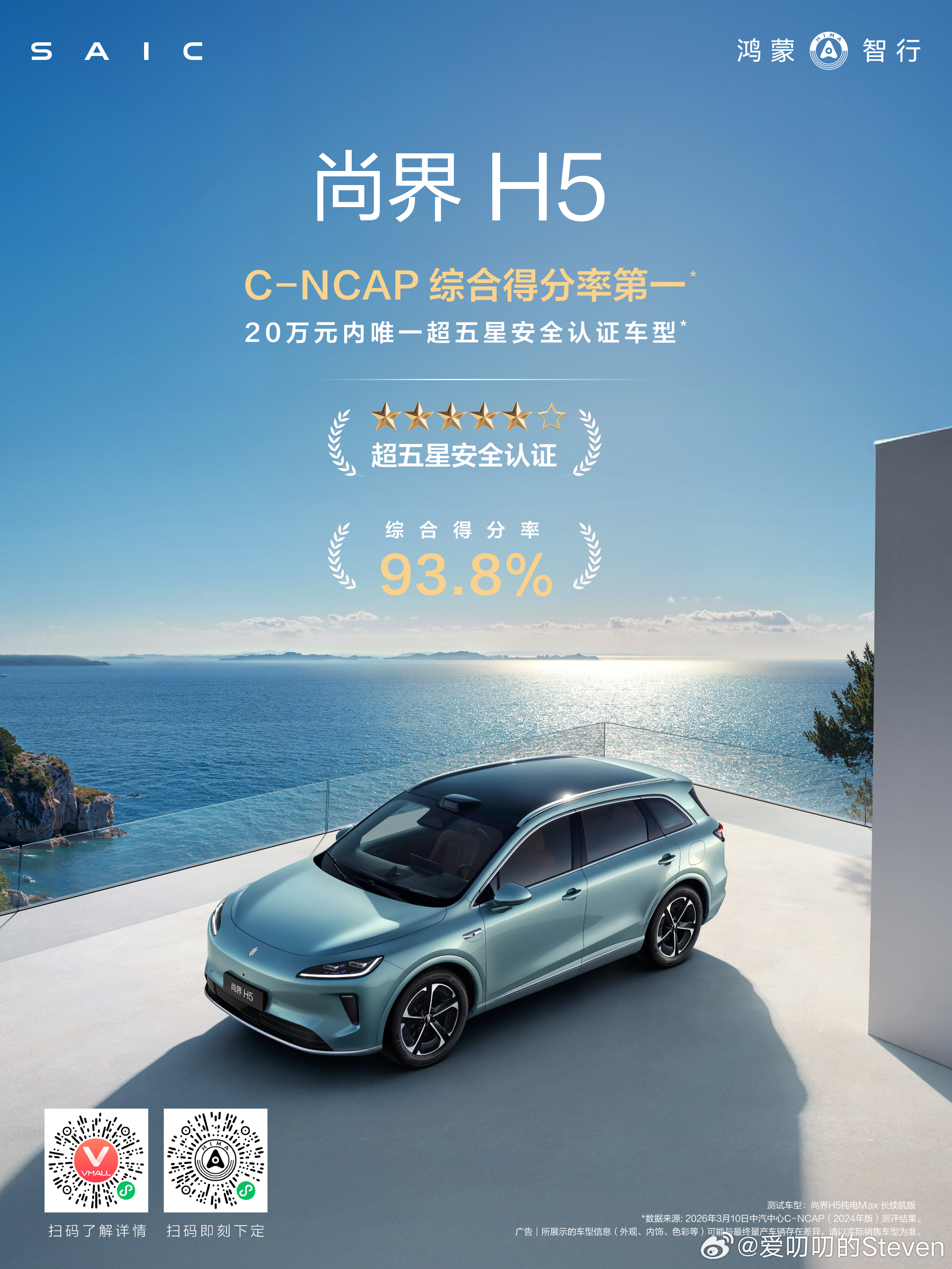 尚界h5C-NCAP 综合得分率93.8%的成绩荣获第一!成为20万元内唯一超五星安全认证车型。给尚界H5给尚界品牌开了一个不错的头,一起继续等尚界z7 。