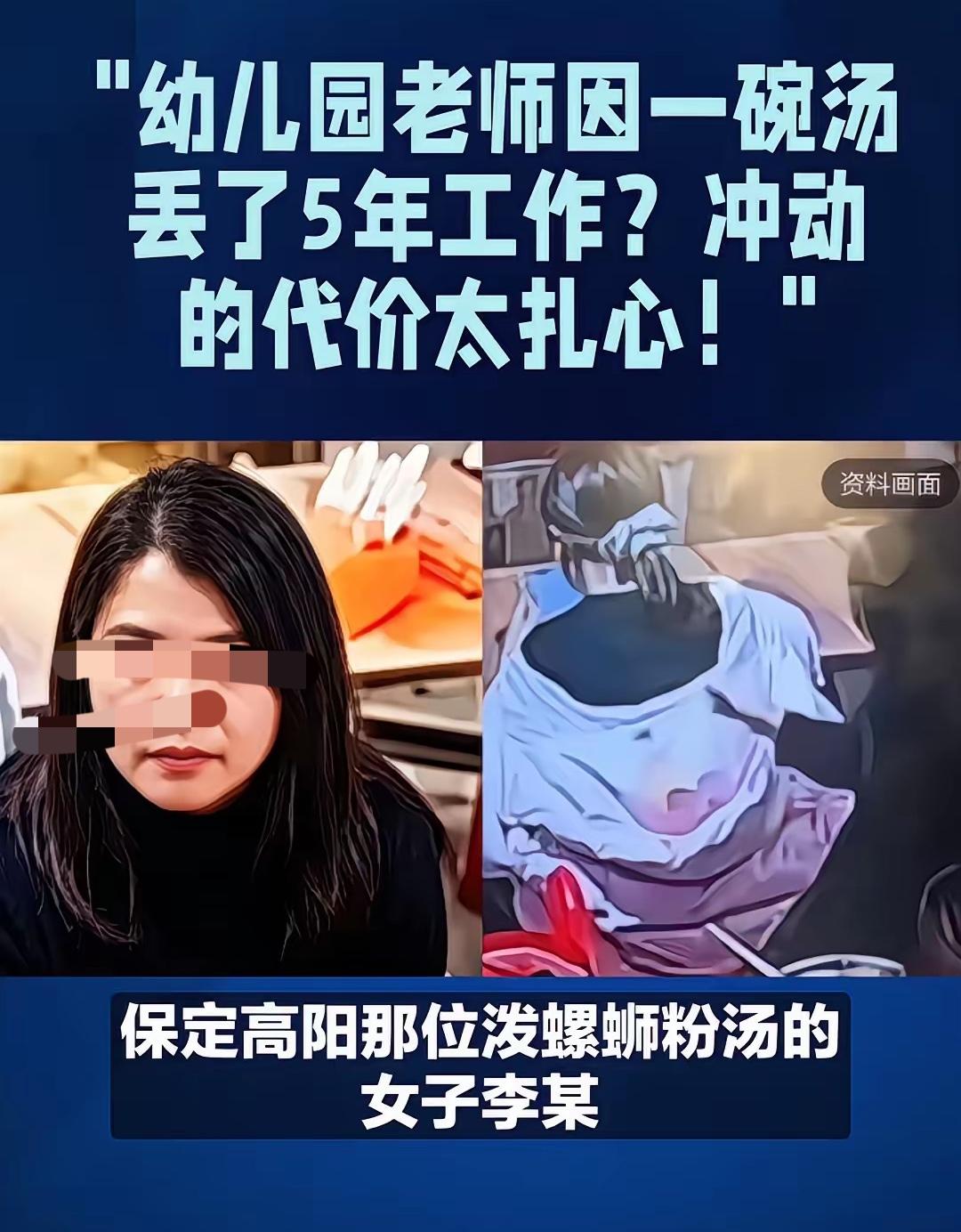 螺蛳粉姐真实身份曝光,她的低劣跟自己身份完全不匹配 螺蛳粉姐彻底把自己的前途葬送,身败名裂不为过,她的举动跟她的身份完全不匹配,一个老师而且是幼儿园老师的行为真令人大跌眼镜,老师都是有正义和爱心的,但螺蛳粉姐完全没有,因为一个凳子大骂邻座,自己不解恨还用汤汁泼邻座,太歹毒了。 螺蛳粉姐的行为被曝光后她所在的单位直接把她开除,螺蛳粉姐想在本地混口饭吃估计难了,自作孽不可活。