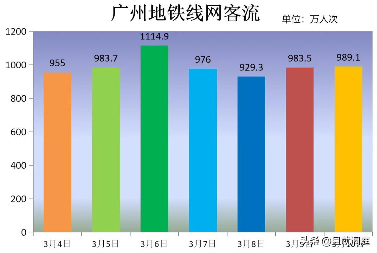 广州地铁3月10日总客流量为989.1万人次,深圳地铁昨天客流量有960万人次左