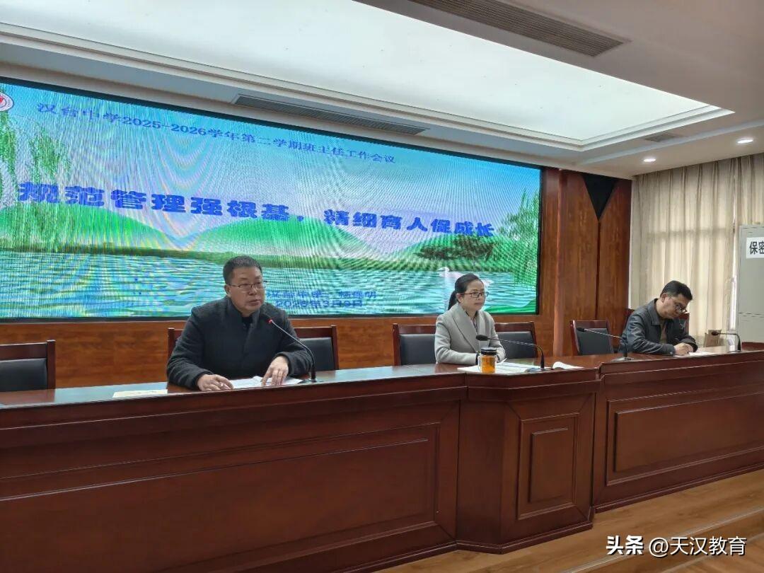 汉台中学于3月9日召开新学期班主任工作会,学校刘敬梅校长、孙韬副校长出席会议,高一、高二全体班主任及年级部主任参会,会议全面复盘上学期工作成效,周密部署新学期重点任务,为新学期德育工作锚定方向、明晰路径。