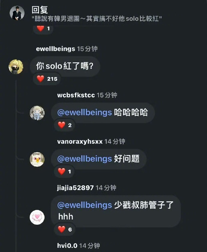 炎亚纶谈李羲承退团炎亚纶说李羲承搞不好solo会更红,得到了网友的锐评“你solo红了吗”。这波操作看似炎亚纶被骂了,实则他蹭上热度给他爽到了